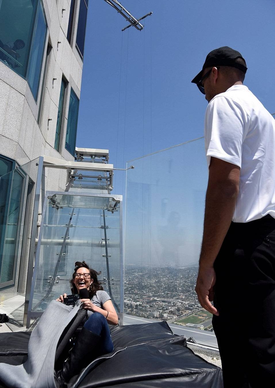Необычный аттракцион открыли на самом высоком здании в Лос-Анджелесе, сообщают американские СМИ. Церемония открытия оригинального аттракциона в "городе ангелов" прошла в минувшую субботу. Он представляет собой прозрачную горку, установленную на самом высоком небоскребе мегаполиса, принадлежащем одному из банков США.