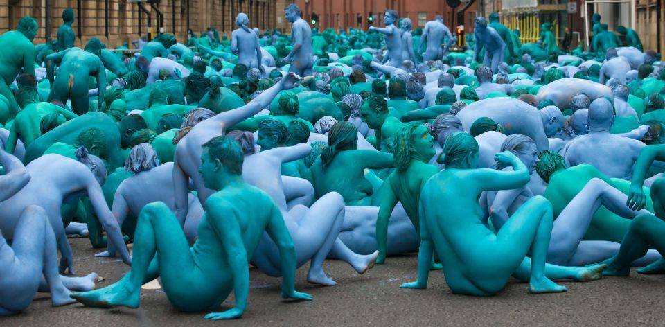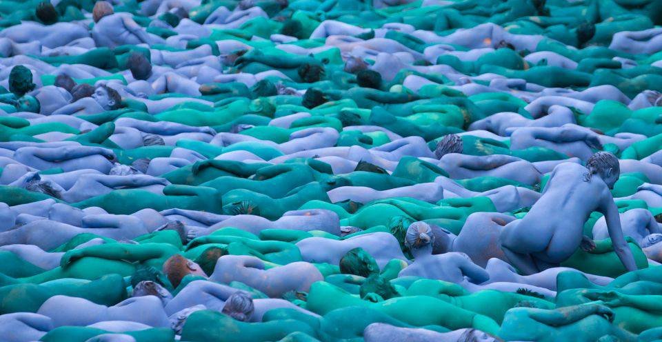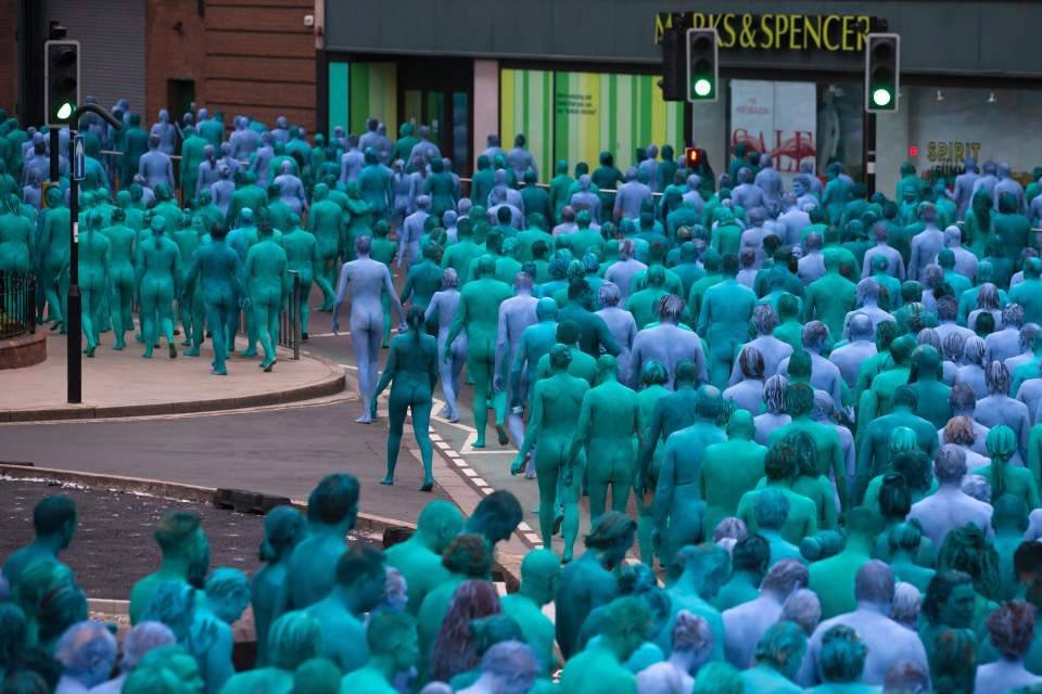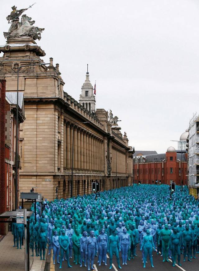 3200 обнаженных добровольцев, покрашенных в четыре оттенка синего цвета, приняли участие в арт-проекте нью-йоркского художника Спенсера Туника городе Халл, Британия. Это крупнейшая инсталляция подобного рода в Великобритании, в ней участвовали люди из 20 стран мира. Работы под названием "Море Халла" будут выставлены в галерее в 2017 году.