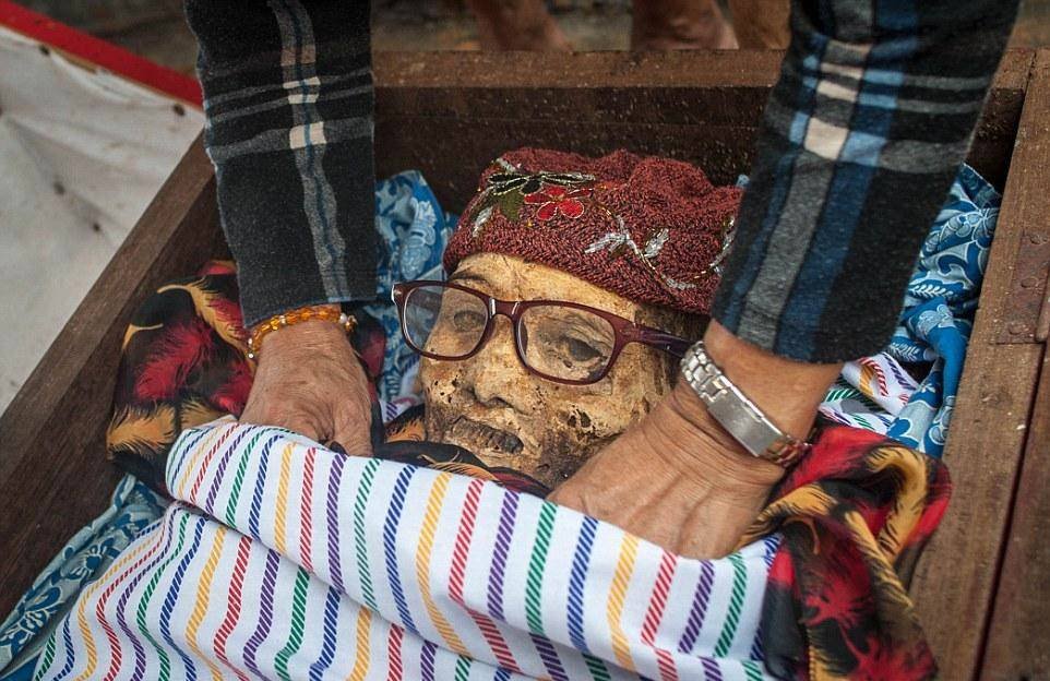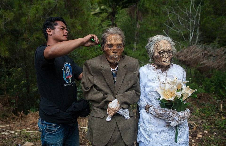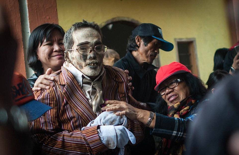 В Индонезии есть какое-то странный ритуал под названием Ma"nene, когда люди раз в три года достают своих покойных предков из могил, переодевают в свежую одежду, прихорашивают, показывают соседям, после чего веселятся и закапывают обратно. Чтобы через три года снова повторить этот странный ритуал. Некоторые семьи для пущего удобства делают специальные гробы с дверцами, которые не зарывают в землю, а ставят в специальные ниши и закрывают крышкой.