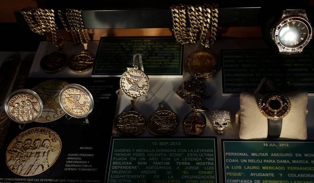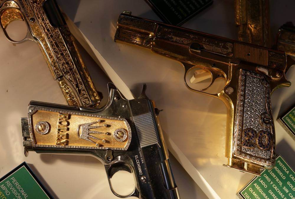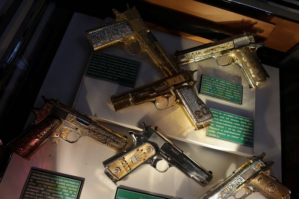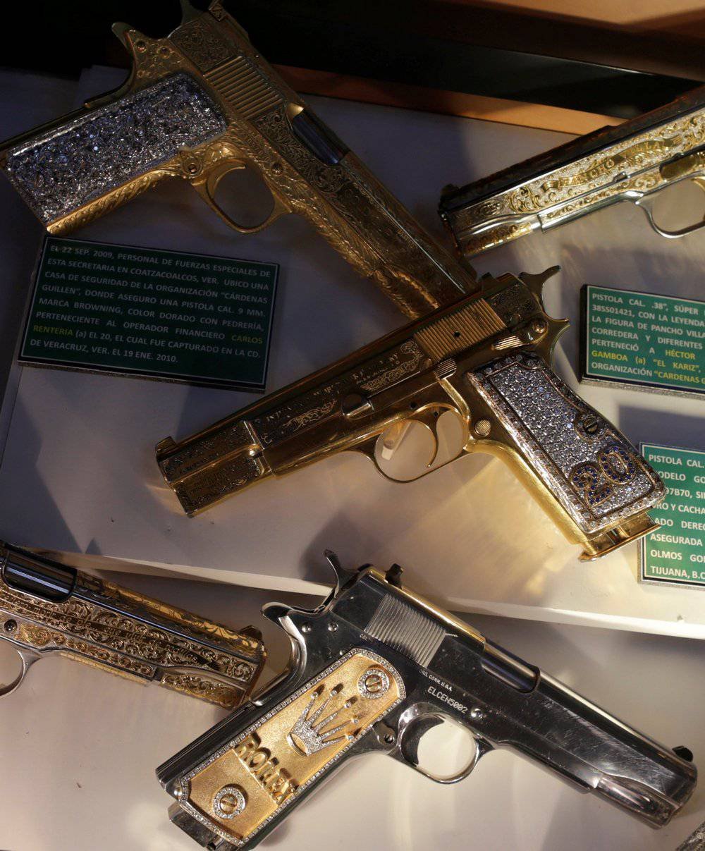 В штаб-квартире Министерства обороны в Мехико представили коллекцию оружия, украшенного золотом, для демонстрации образа жизни мексиканских наркобаронов. Кроме оружия экспозиция содержит украшения, медали, телефоны и другие предметы, украшенные драгоценными камнями и металлами, которые принадлежали наркоторговцам.