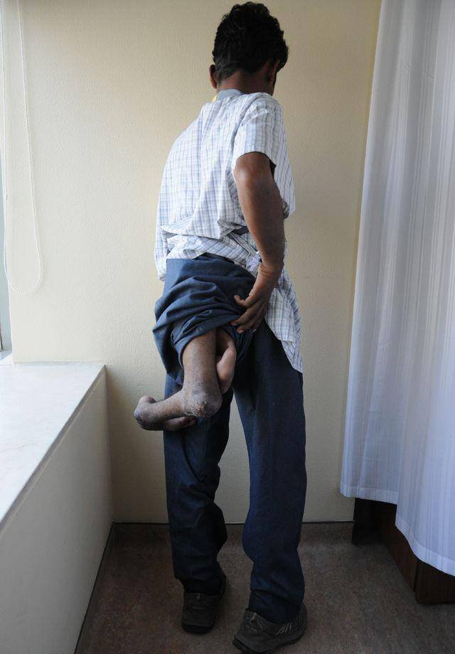 22-летний Арун Кумар из индийского штата Уттар-Прадеш родился с двумя лишними ногами, растущими из его поясницы. Одна из них неразвита, вторая - постоянно согнута в колене. Паренек живет без какого-либо лечения на протяжении 15 лет, и вот теперь, благодаря социальным сетям, его случаем заинтересовались врачи.