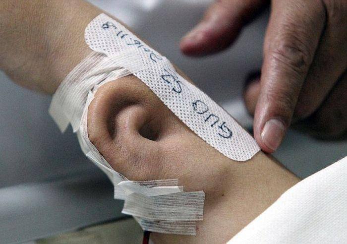 В больнице при китайском Университете Джао Тонг в Сиане, провинция Шэньси, врачам удалось вырастить ухо на руке пациента. Это было сделано для того, чтобы впоследствии сделать пересадку уха пациенту, который потерял его во время аварии. Традиционная медицина не представляла возможным вернуть правое ухо пациенту, а потому врачи стали искать возможные пути выхода из данной ситуации. На правой руке под предплечьем был установлен расширитель кожи, далее из извлеченного из ребра пациента хряща смоделировали форму будущего уха и пересадили на руку. Через 3 - 4 месяца методом наложения сосудистого анастомоза ухо будет пересажено на голову пациента.