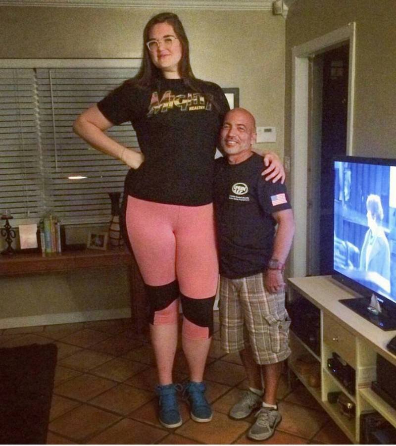 27-летняя Aly Stosz с детства была крупным ребенком, в 12 лет ее рост достигал 190 сантиметров. Девушка очень комплексовала из-за этого, масла в огонь подливали одноклассники, дразня ее «Годзиллой» и «монстром». Сейчас рост девушки более 205 сантиметров, она работает фетиш-моделью, помогая людям справляться с их комплексами