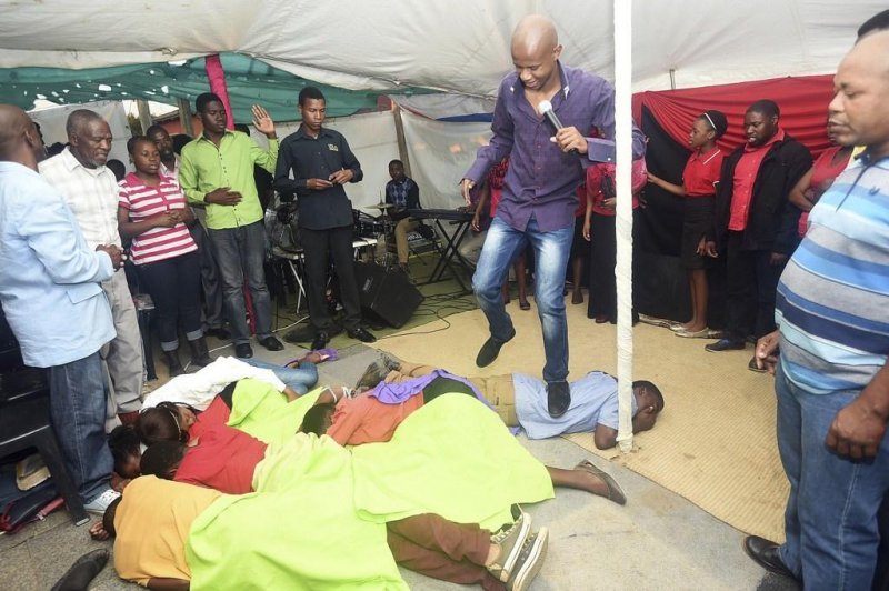 Пенуэл Мнгуни - уникальный южноафриканский пастор. Его способностям позавидовал бы, пожалуй, сам Господь Бог. Дело в том, что Пенуэл лечит абсолютно все и изгоняет бесов изо всех на раз два. Для этого пастор заставляет людей есть живых змей, говоря, что они превратятся в шоколад, тряпки, мусор, волосы, траву, клешни крабов, избивает их ногами, ездит на них верхом, раздевает девушек и ходит по ним в ботинках, полностью лишил зрения женщину, погрузив её голову в глубокую заморозку, а другую раздавил бетонной колонной, прыгает на людей в обуви с высоты, давит их машиной, опрыскивает инсектицидами, НО ЖЕЛАЮЩИХ ПОПАСТЬ К НЕМУ НА ЛЕЧЕНИЕ СТАНОВИТСЯ ТОЛЬКО БОЛЬШЕ!!!