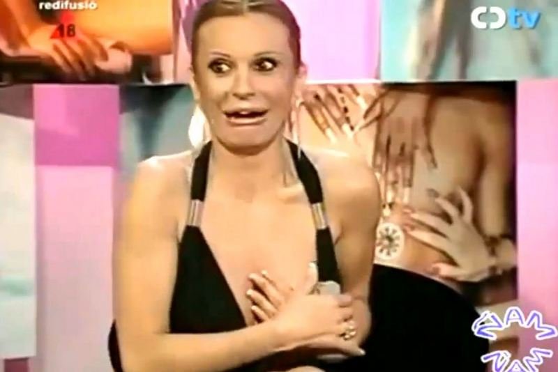 44-летняя испанская телезвезда Соня Монро (Sonia Monroy) выбрала не самое удачное платье для участия в ток-шоу. Во время прямого эфира она нечаянно показала больше, чем хотела: из глубокого декольте вылезла грудь. Но она быстра заметила эту оплошность и исправила ситуацию.