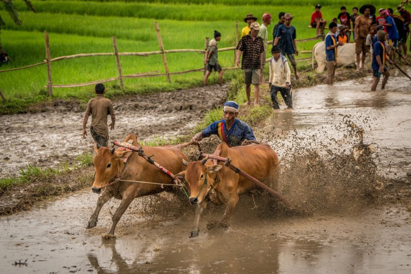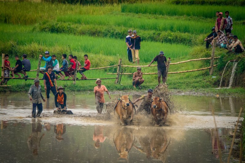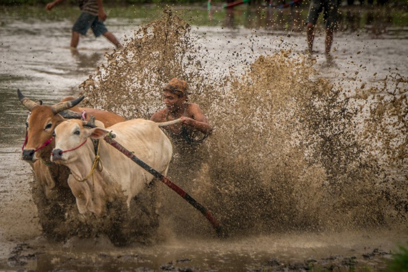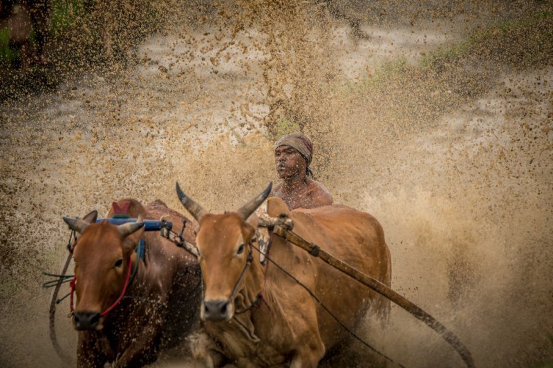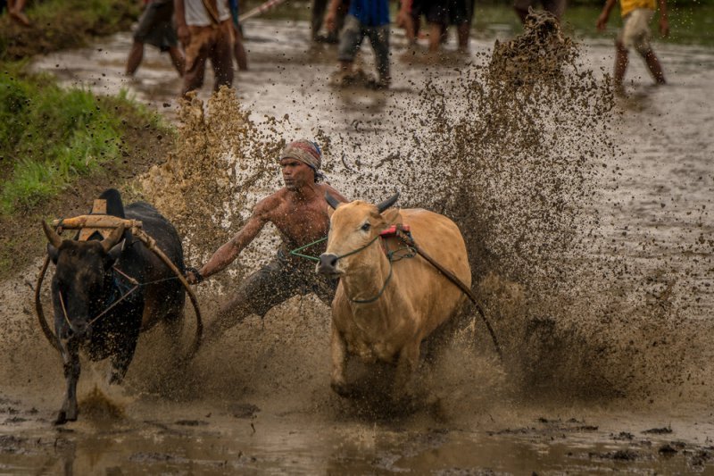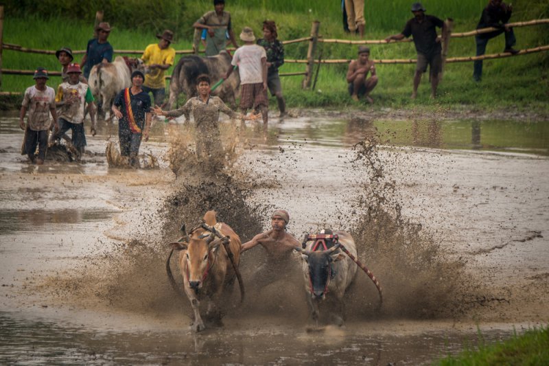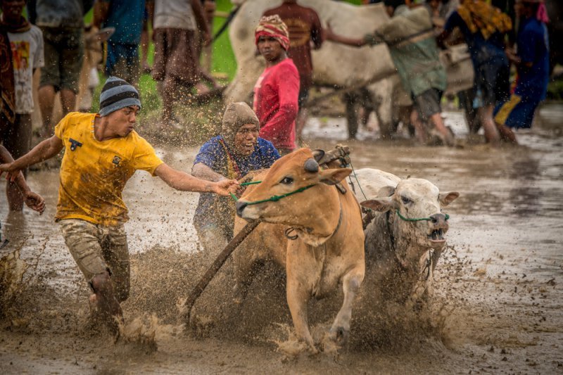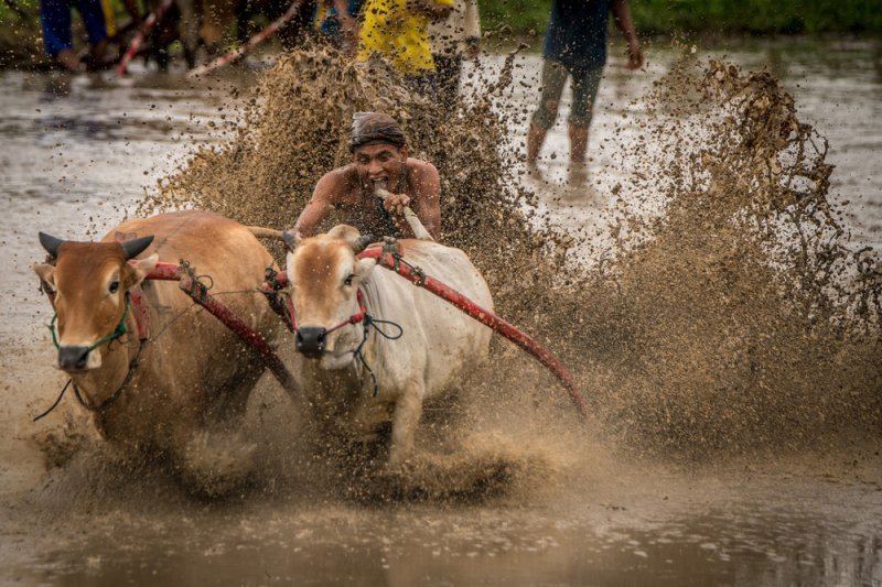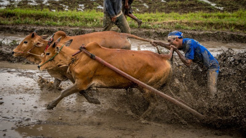 Традиционная гонка на быках, известная как "Pacu Jawi", проходит в Паданге, Западная Суматра, Индонезия. Каждый год перед посадкой риса фермеры демонстрируют свой скот на этих соревнованиях перед потенциальными покупателями. За многие годы состязания стали главным событием года для местных жителей. Эти увлекательные кадры сделал фотограф и эксперт по кибербезопасности Дэ Хан Лин (Teh Han Lin) 12 марта 2016 года во время визита в Индонезию.