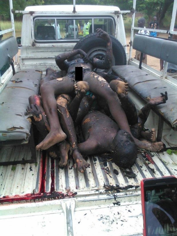 Бдительные граждане поймали семерых торговцев человеческими костями. Преступники убивали негров-альбиносов, снимали мясо с костей, а затем продавали собственно кости в качестве магических ингредиентов. Местные поступили с ними по принципу "око за око". Каждого торговца избивали до полусмерти, затем обкладывали соломой и поджигали. Такой вот экзекуции придали всех семерых.