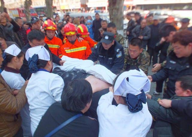 Житель города Ухань, Китай, 27-летний Сяо Хуан весом 220 кг упал на улице и не смог самостоятельно подняться. Сначала справиться с ситуацией пытались полицейские, потом пожарные и медики. В конце концов пожарным пришло в голову воспользоваться широким и прочным щитом, с помощью которого они переместили бедолагу на больничную каталку, где он смог отдохнуть.