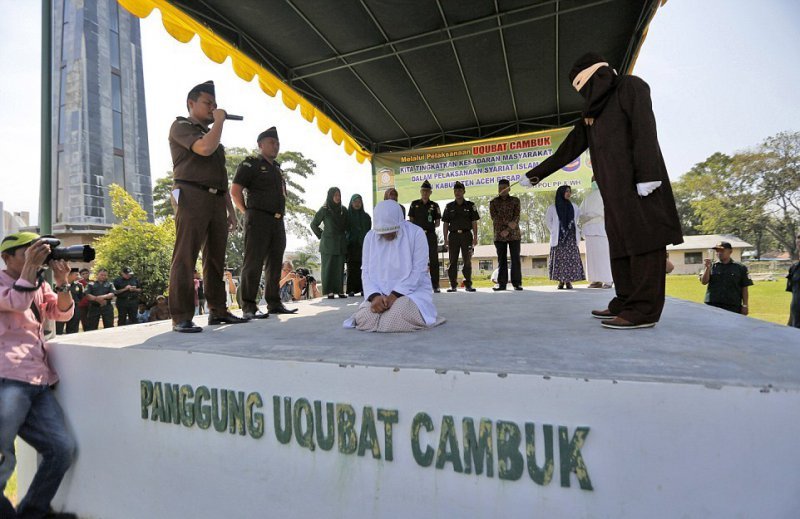 Очередная публичная порка состоялась в Индонезии, на этот раз палок получили 5 человек. Избиение произошло в провинции Ачех, которая является единственной провинцией в стране, где реализуют законы шариата в полном объеме. За внебрачный секс женщина получила 100 ударов, ее кавалер — 120, еще один товарищ получил 120 ударов за сексуальные домогательства в отношении детей, другой мужчина получил 9 ударов за увлечение азартными играми, еще одного мужчину побили палками за мошенничество.