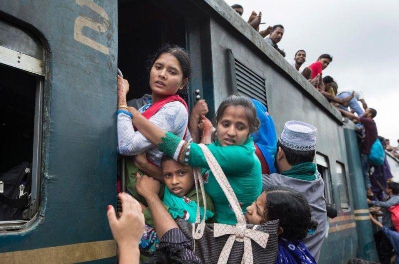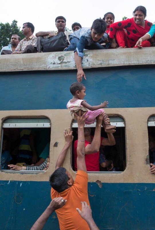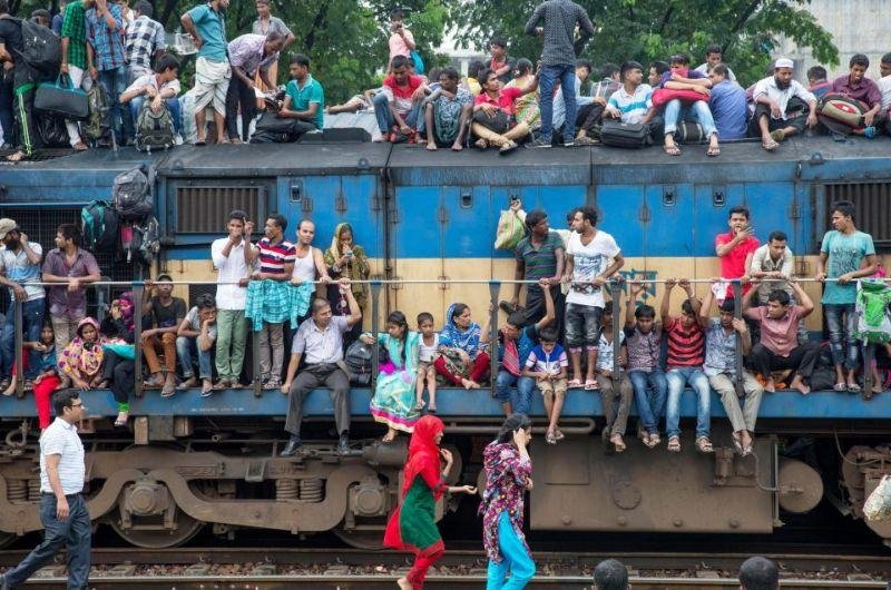 Поездка в метро в час пик - то еще удовольствие, но, глядя на попытки жителей Бангладеш забраться в пригородные поезда, становится понятно, что нам грех жаловаться. Около 2000 мужчин, женщин и детей, которым не досталось места в поездах, гроздьями висят на локомотивах в отчаянной попытке уехать. И так каждый день.