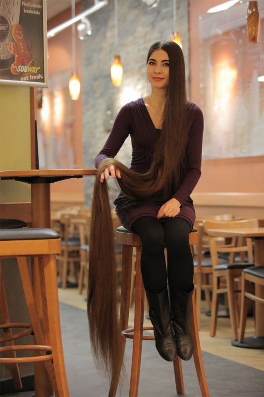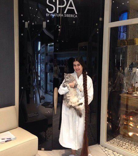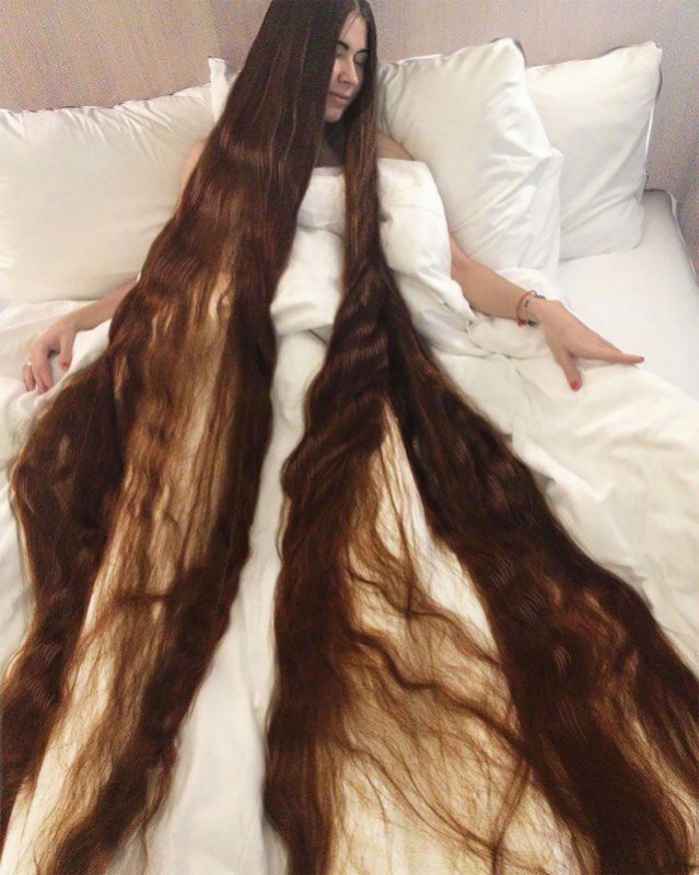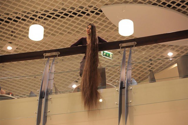Это Алия Насырова, которую нередко называют Рапунцель. У нее такие длинные волосы, что муж признается, что он думает о них, как о еще об одном члене семьи.