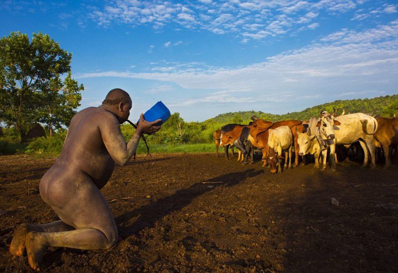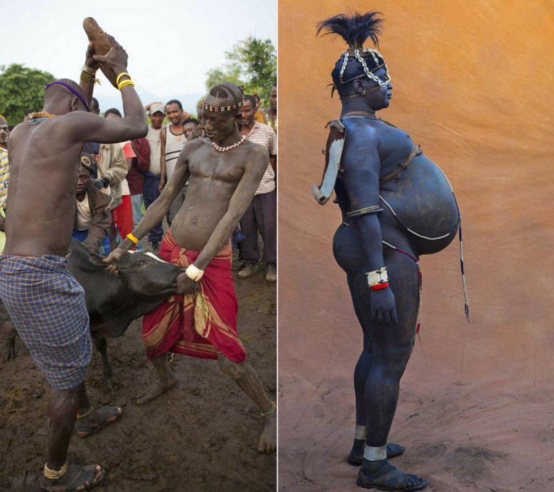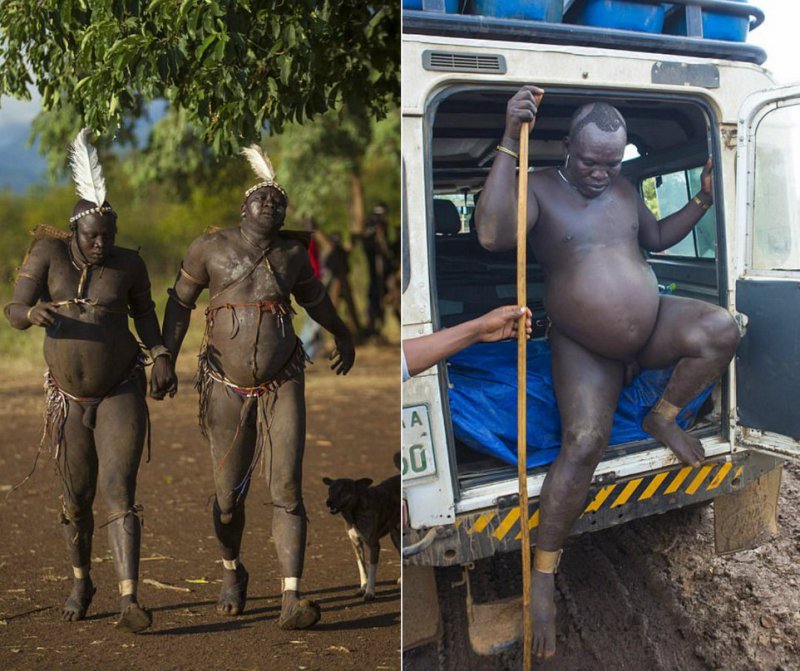 В Эфиопском племени Боди одним из главных критериев мужской красоты является большой живот. Ежегодно там проходит конкурс, где выбирают самого пузатого, соответственно самого красивого мужчину. Конкурсанты начинают готовиться заранее, полгода они пьют только коровье молоко и кровь, не занимаются сексом и практически не выходят из дома.
