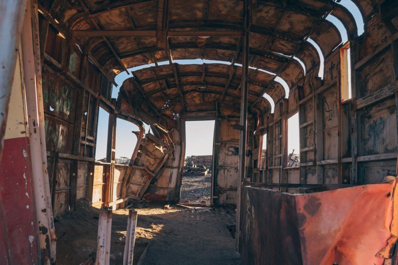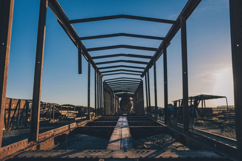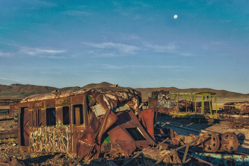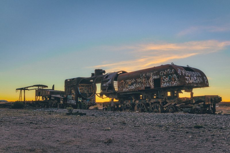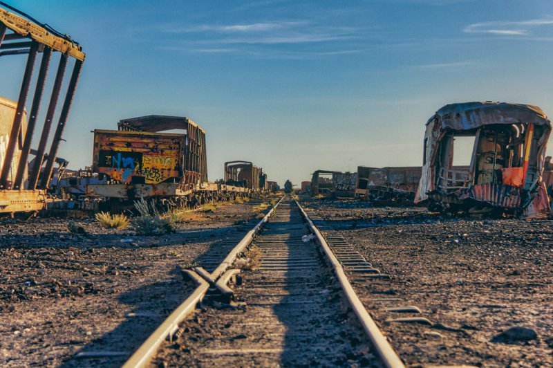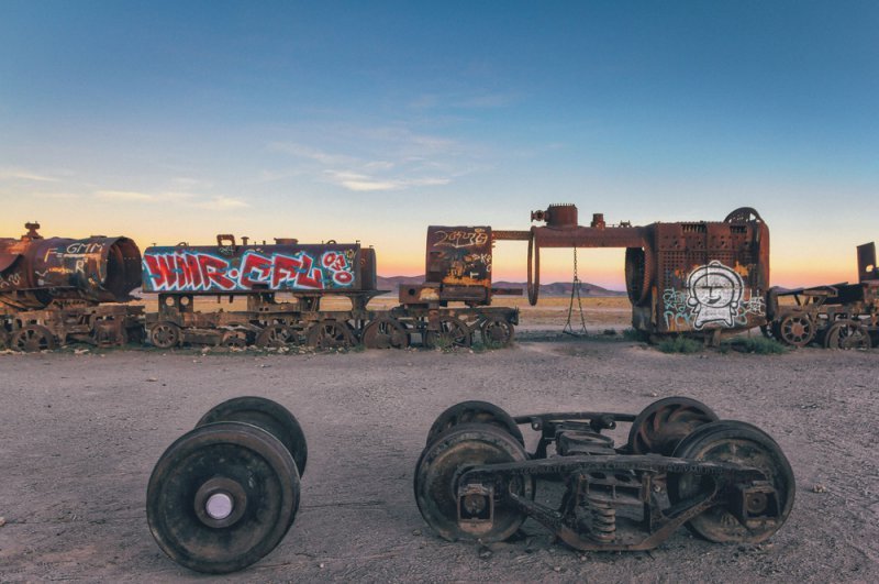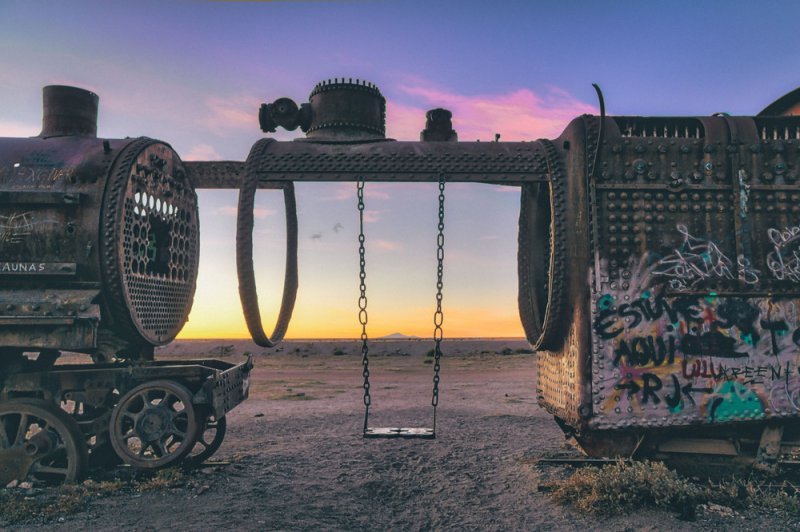 Более 100 железнодорожных вагонов и локомотивов можно увидеть на таинственном кладбище поездов в Боливии. Скелеты Британских паровозов и вагонов ржавеют на окраине крупнейших солончаков в мире. Кладбище находится на участке заброшенной железнодорожной ветки в двух милях к юго-западу от города Уюни. Большинство паровозов 19 века были импортированы из Великобритании, но не выдержали испытание климатом Боливии и быстро покрылись ржавчиной.