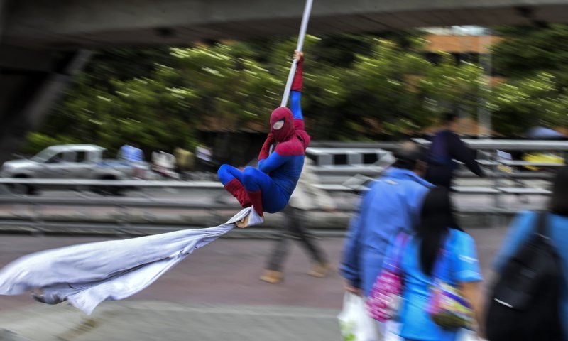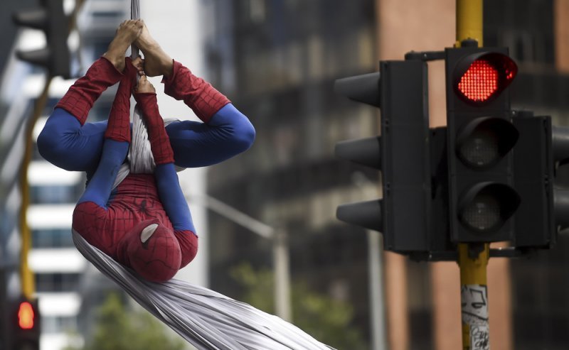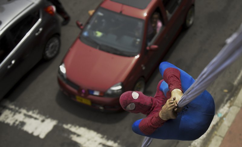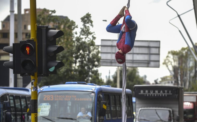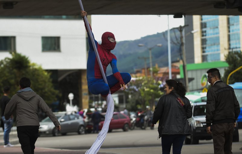 Каждый день колумбиец Фреди Ян Дуке (Jahn Fredy Duque) садится на велосипед и едет к мосту недалеко от Международного центра Боготы. Там он надевает потрепанный костюм супергероя «Человека-Паука» и устраивает представление, выполняя трюки на 26-метровом куске ткани. Таким образом колумбиец зарабатывает на кусок хлеба.