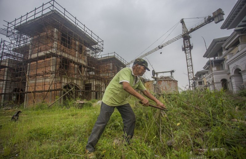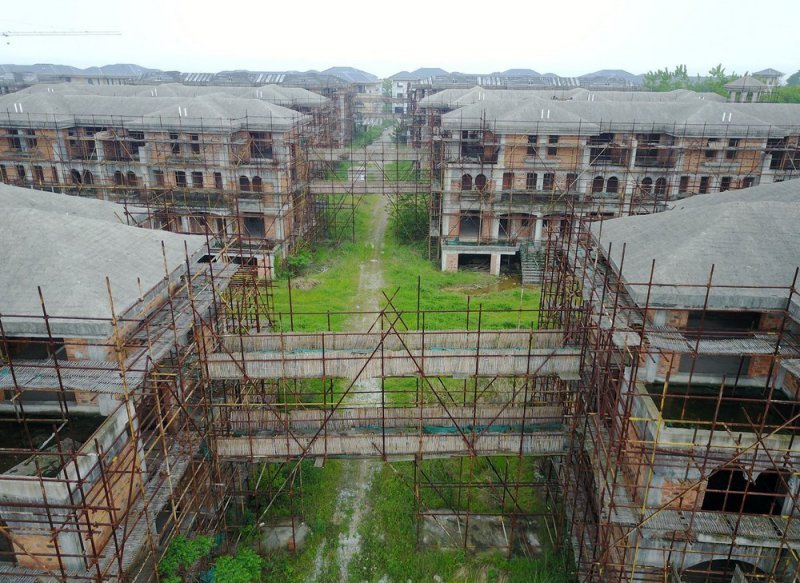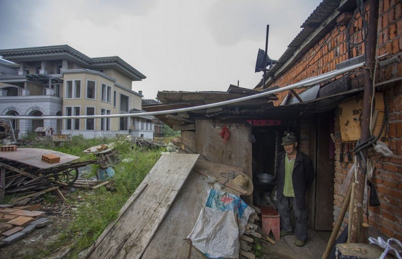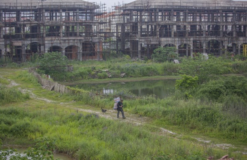 75-летний старик и его собака — единственные жители общины неподалеку от озера в китайской провинции Аньхой. Эта местность должна была стать элитным районом, но 70 престижных вилл так и остались недостроенными. Мужчина по фамилии Гао получает около 260 долларов в месяц за то, что присматривает за зданиями и брошенным оборудованием.
