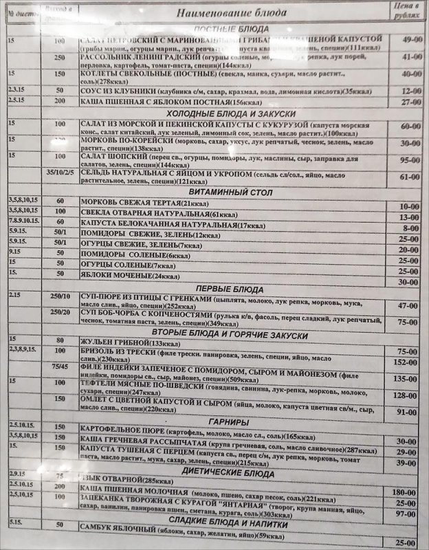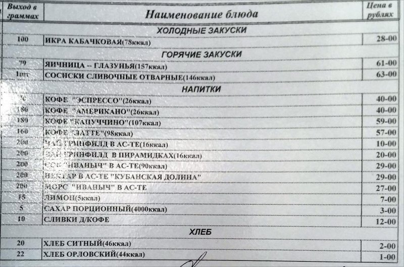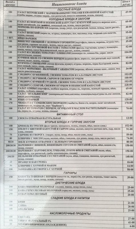 Заглянем в буфетное меню, ведь на витрине выставлено далеко не всё.