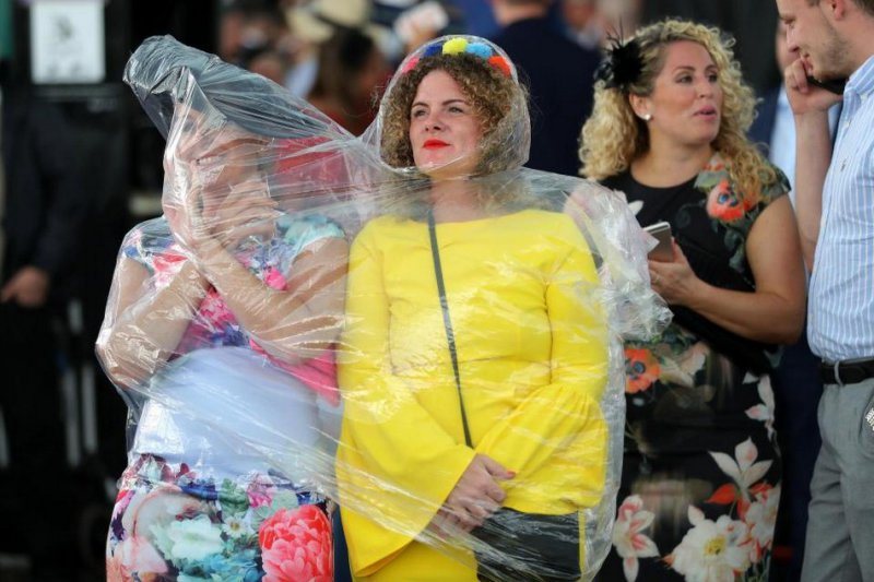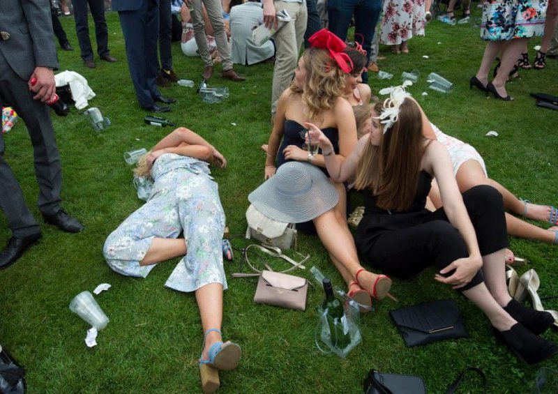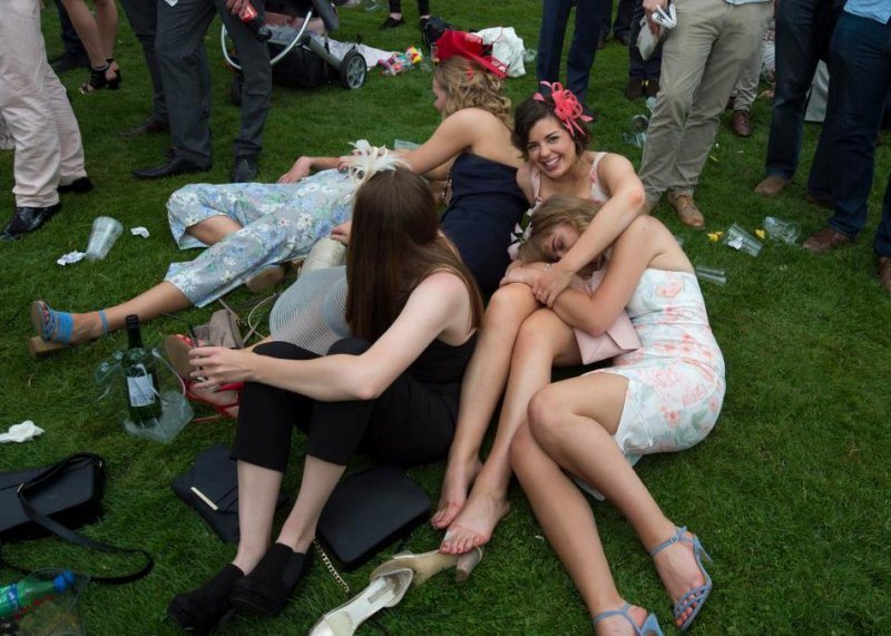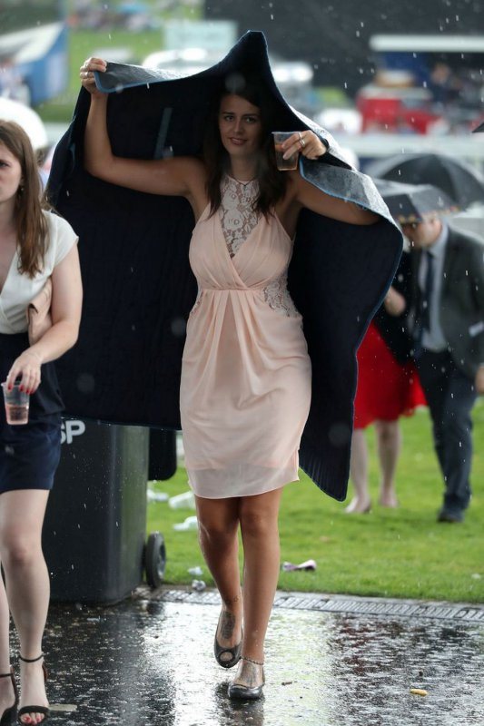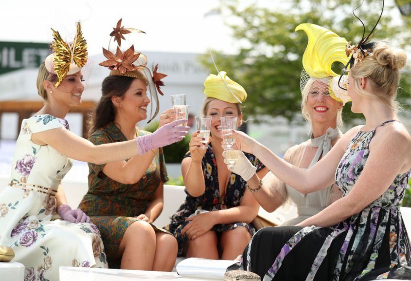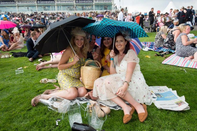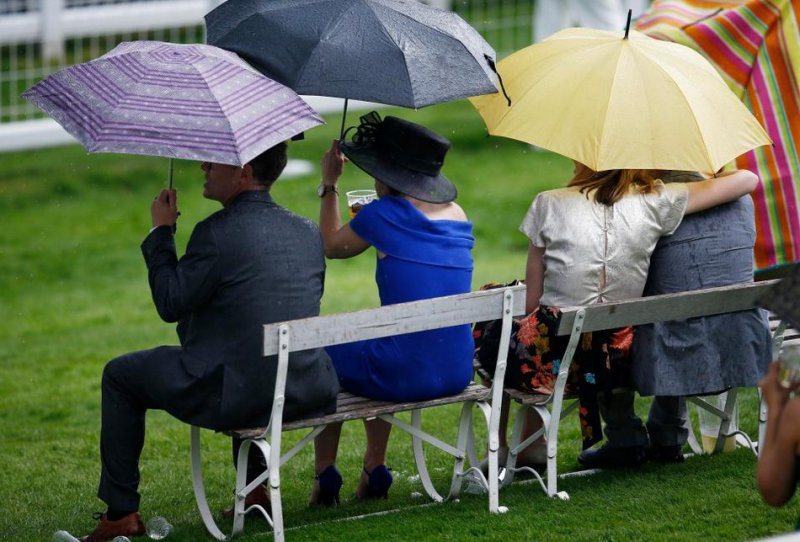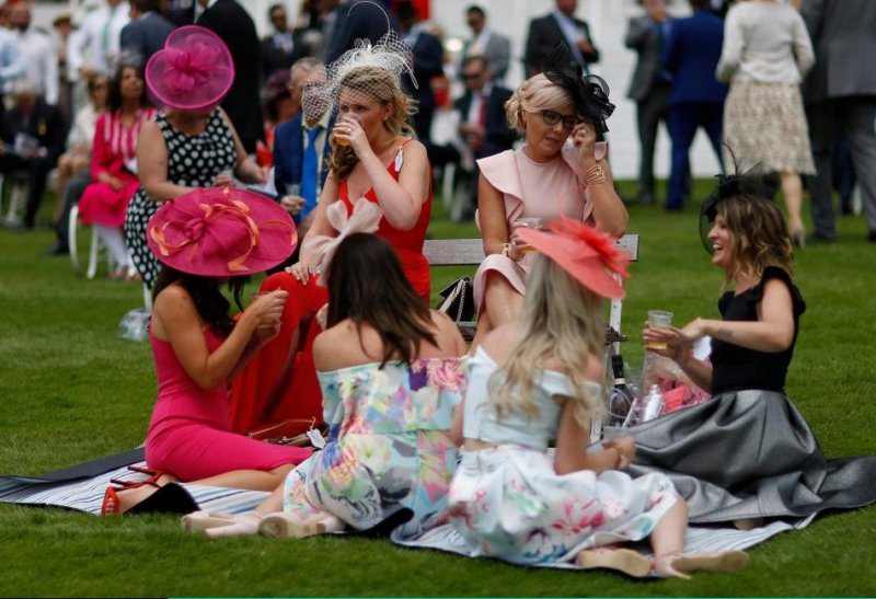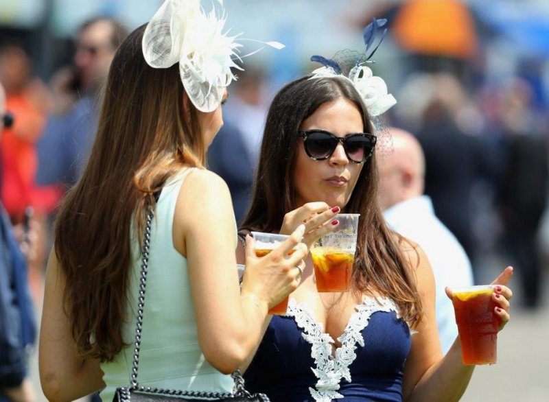 Любительницы скачек собрались в минувшую пятницу на Эпсомском ипподроме в Суррее. Девушки были в гламурных платьях, туфлях на высоких каблуках и колоритных шляпках. Шампанское, коктейли и пиво текли рекой, даже дождь не помешал дамам повеселиться от души.