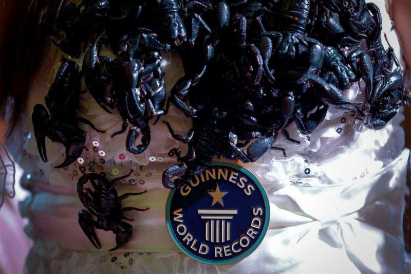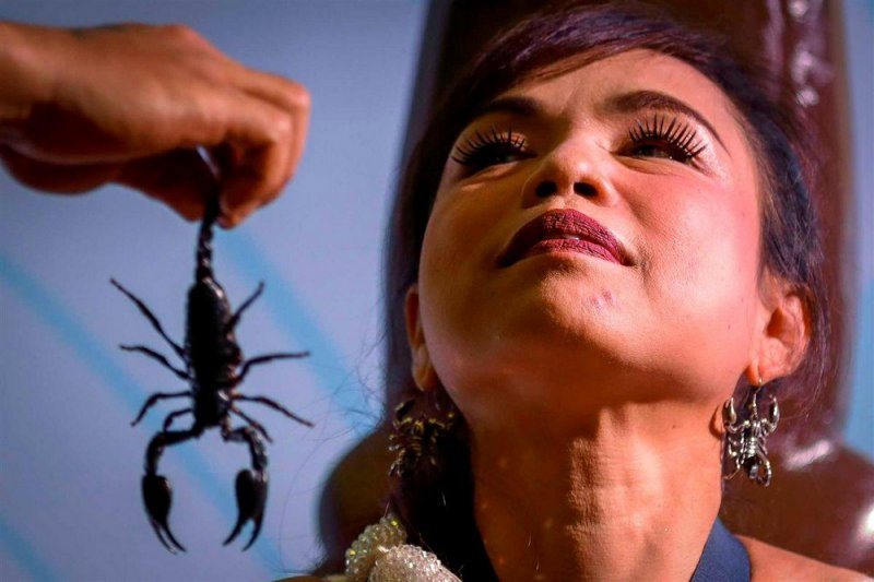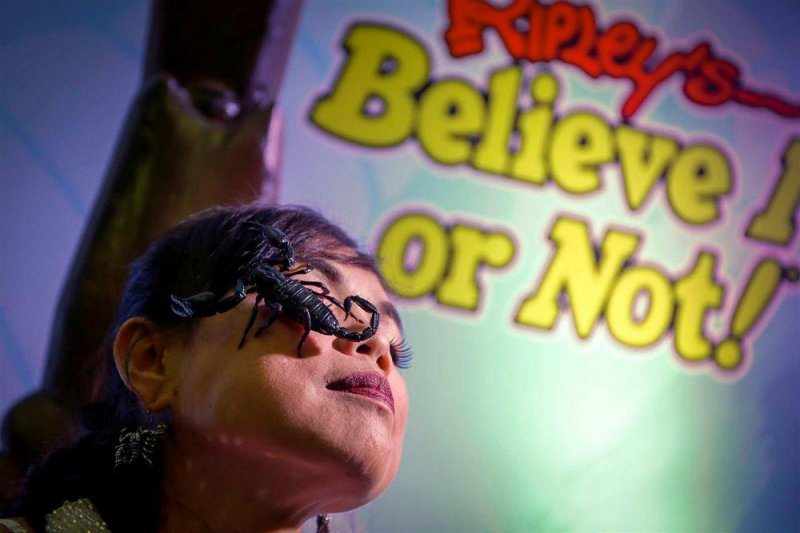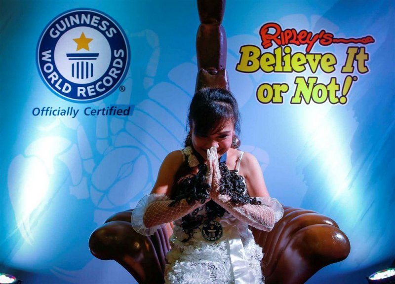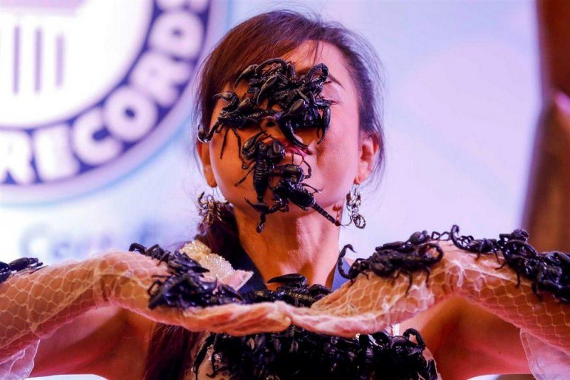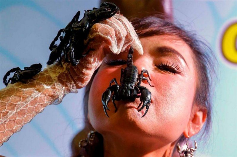 Бесстрашная Kanchana Kaetkaew, которую называют "Королева скорпионов", на днях установила рекорд для книги Гиннесса. Она продержала живого скорпиона в закрытом рту 3 минуты 28 секунд. Стоит отметить, что это уже второй рекорд, для первого она прожила 33 дня в стеклянном кубе площадью 12 квадратных метров с 5000 скорпионов. Это единственная тайская женщина, дважды попавшая в книгу рекордов Гиннесса.