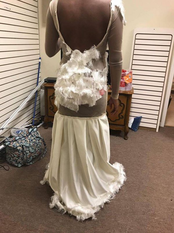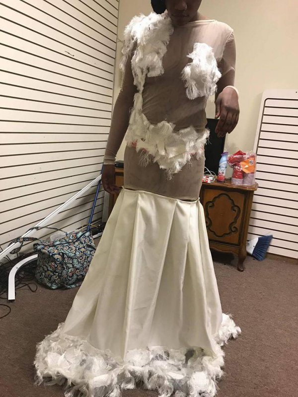В понедельник Dee Lewis из города Рочестер, штат Нью-Йорк, выложила 3 фото платья на Facebook, которое она заказала у дизайнера за $300 на выпускной для своей дочери Malexa Maeweathe. Девушка была шокирована, увидев эту несуразную конструкцию.