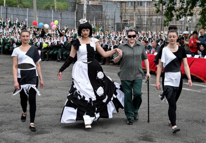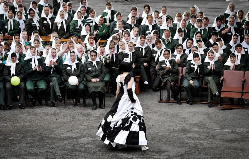 Женская исправительная колония №10 расположена в деревне Горное Приморского края, это где-то где тайга и сопки на самом востоке России. Веселого там мало, поэтому начальство иногда устраивает два вида праздников: конкурс красоты и парад моды. В этот раз репортаж с парада моды. Заключенные, которые себя хорошо вели, получили возможность разработать и сшить фантастической красоты наряды. После чего сами выступили в качестве моделей для их демонстрации, а тюремное начальство в жюри выбрало лучшие работы. Не знаем, что было в качестве главного приза победительницы, но без пары пачек чая и пакета с сушками точно не обошлось!