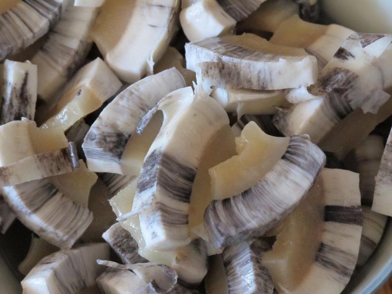 Муктук, деликатес из Аляски. Куски сырого сала кита.