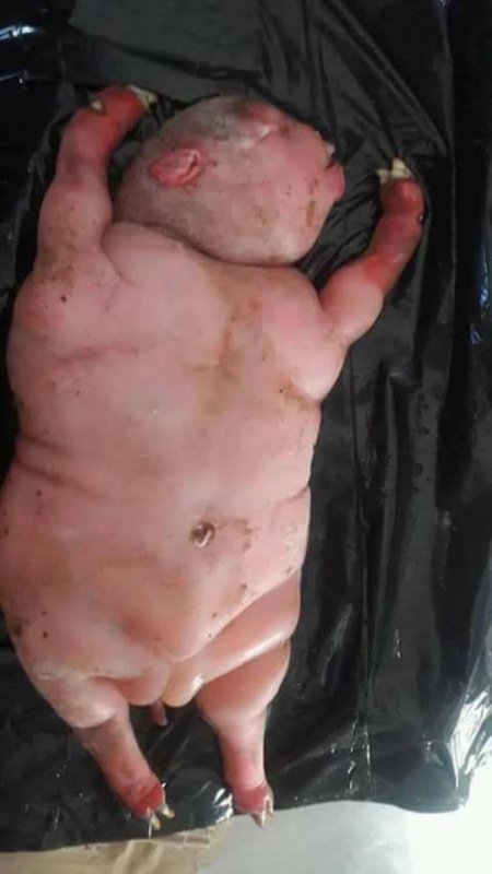 Жители одной из деревень в ЮАР теперь косо смотрят друг на друга, так как подозревают, что в деревне появился колдун. Потому что на днях там родилось вот это вот существо...