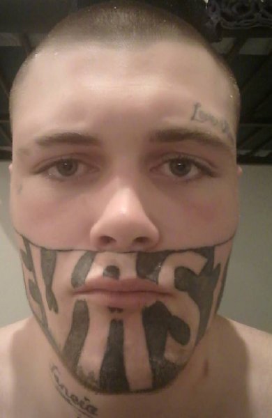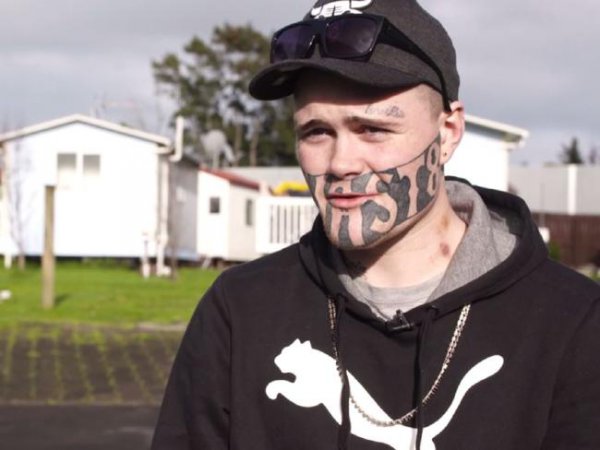 19-летний Марк Кропп сделал татуировку, когда в прошлом году пил самогон со своим братом в тюрьме в Новой Зеландии. Он попал за решетку за то, что хотел с ножом ограбить туриста после попытки продать ему поддельную марихуану.