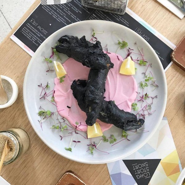 В австралийском кафе Long Story Short подают блюдо, от одного вида которого отшибает аппетит, — рыба, приготовленная в кляре с активированным углем. Несмотря на сходство с экскрементами, блюдо, по словам клиентов заведения, невероятно вкусное.