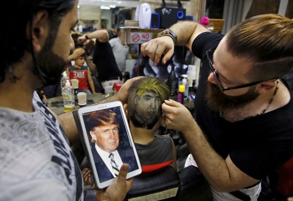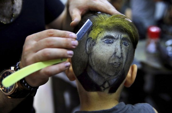 Его последним творением стал портрет Дональда Трампа. Парикмахер создал контуры лица американского президента, выбрив волосы по разной длине, но оставил прядь окрашенных волос на макушке – получилась убедительная вариация прически американского президента.