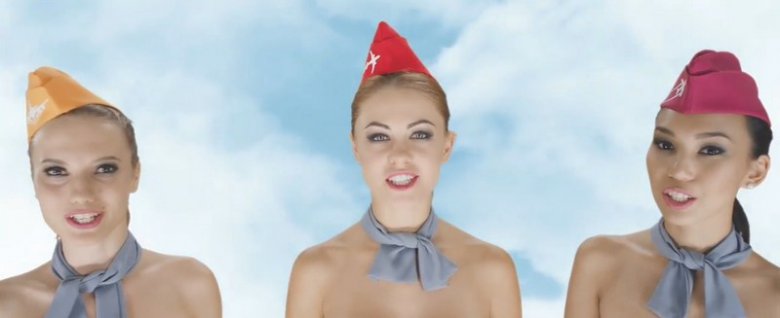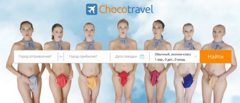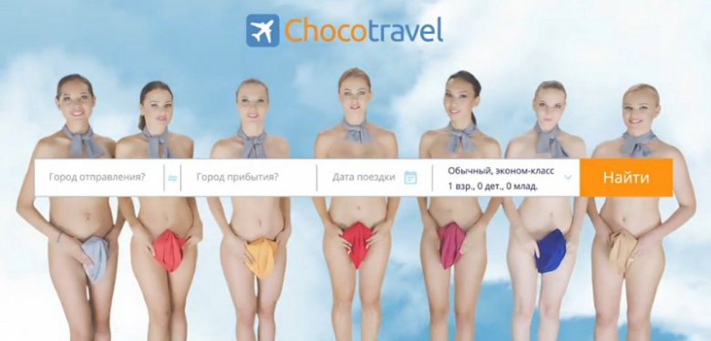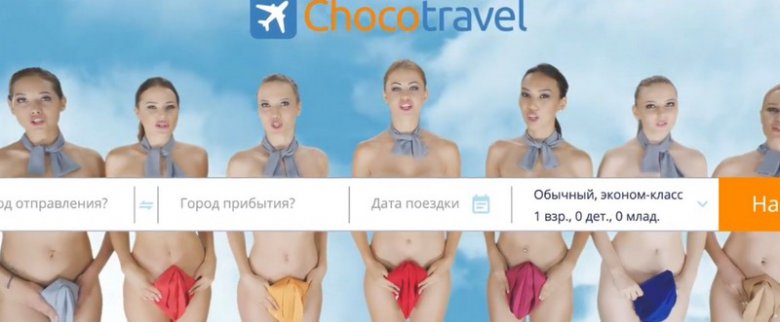 Казахский сайт по продаже авиабилетов Chocotravel снял рекламный ролик, где семь обнаженных девушек приглашают клиентов. Грудь девушек прикрыта надписью, затем девушки снимают пилотки с головы и прикрывают ими свои "пилотки". Ролик быстро распространился по сети, но вызвал неоднозначную реакцию, многие признали его вульгарным и обвинили компанию в сексизме.