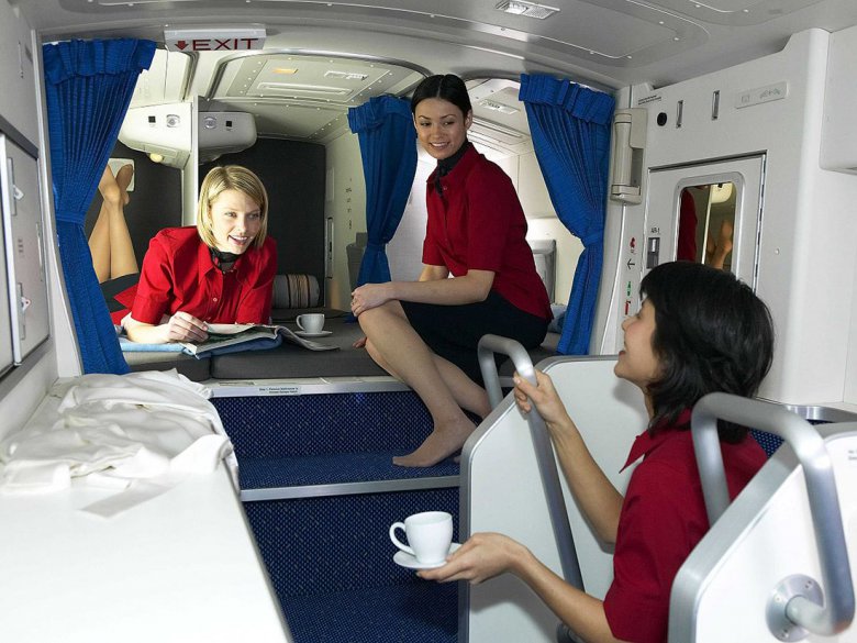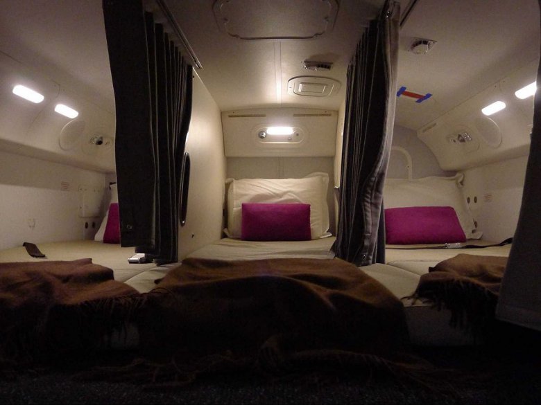 Во время долгого перелета в Азию важно иметь возможность поспать. Но как отдохнуть представителям экипажа? Оказывается, на самолетах Boeing 777 и 787 есть тайная лесенка, ведущая в крошечный отсек без окон, где находятся спальни стюардесс и пилотов. В конце концов, им тоже нужно спать и отдыхать во время перелетов по 18 часов. Пассажиров туда не пускают, а многие даже не подозревают о существовании подобных кабинок. Но теперь у нас есть возможность заглянуть туда.