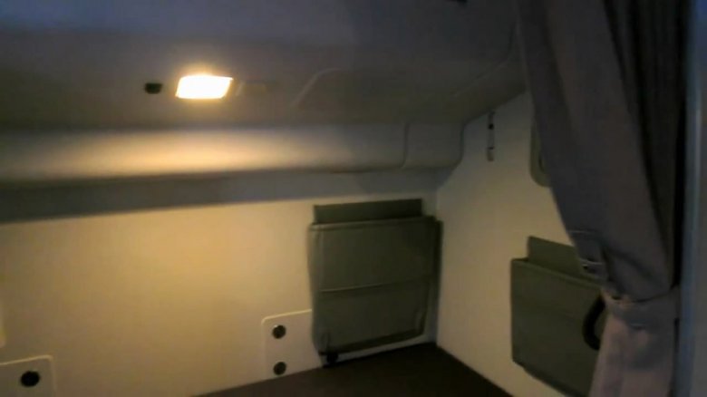 Каждый отсек примерно 1,8 м в длину и всего 60 см в ширину. Наверху есть лампочка для чтения.