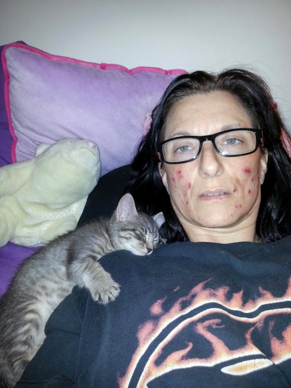 Линда говорит, что ее состояние ухудшилось по мере того, как она стала старше, и теперь она не может прожить больше нескольких часов, не оторвав кусочек своей кожи. Дерматилломания — это компульсивное расстройство, которое заставляет страдальцев отдирать кожу, вызывая неприятные раны. Они не могут остановиться и постоянно царапают, трут, щипают и отдираю здоровую кожу, используя пальцы, булавки, иголки и пинцеты.