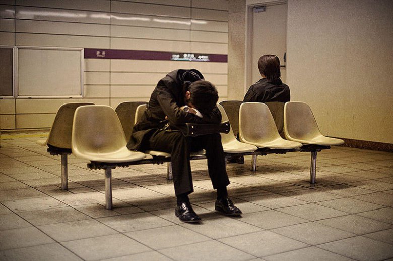 В любом другом государстве спящих в метро, на скамейках или даже посреди улиц людей можно было бы принять за алкоголиков, наркоманов или бомжей. Но на них приличная одежда, а в руках — портфели с документами. Это — горящие на работе японские трудоголики, которые не в состоянии добраться домой после 12-часового рабочего дня.