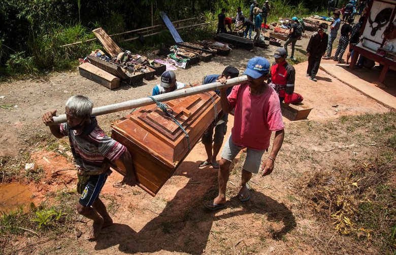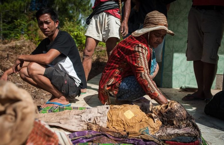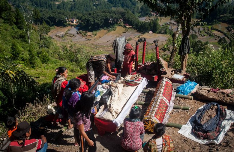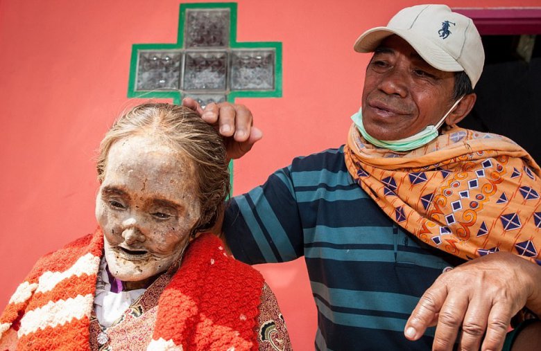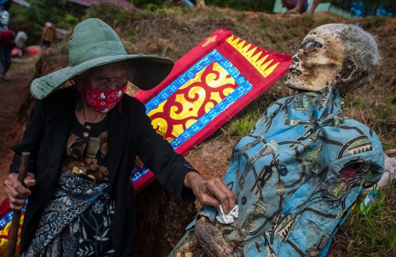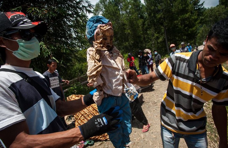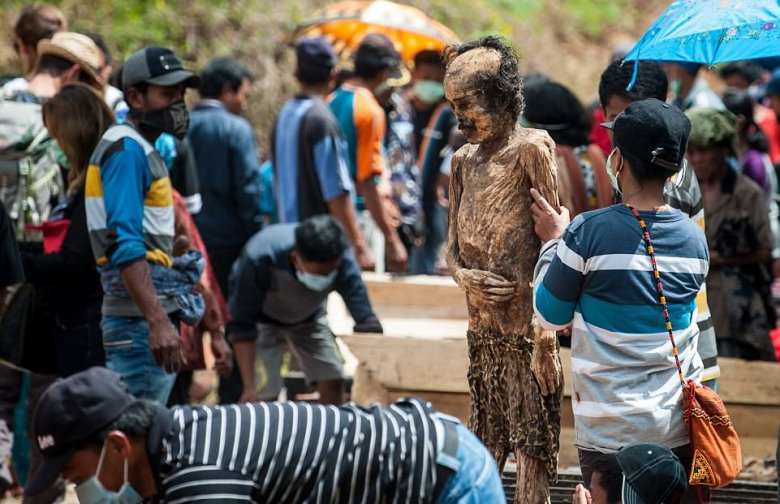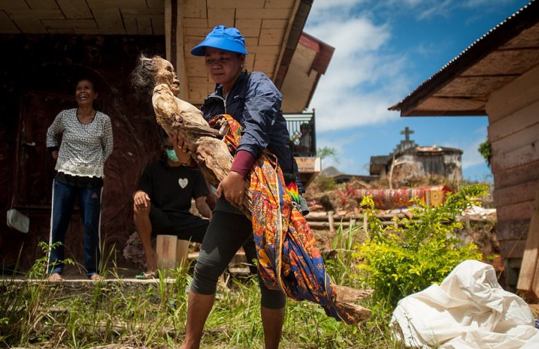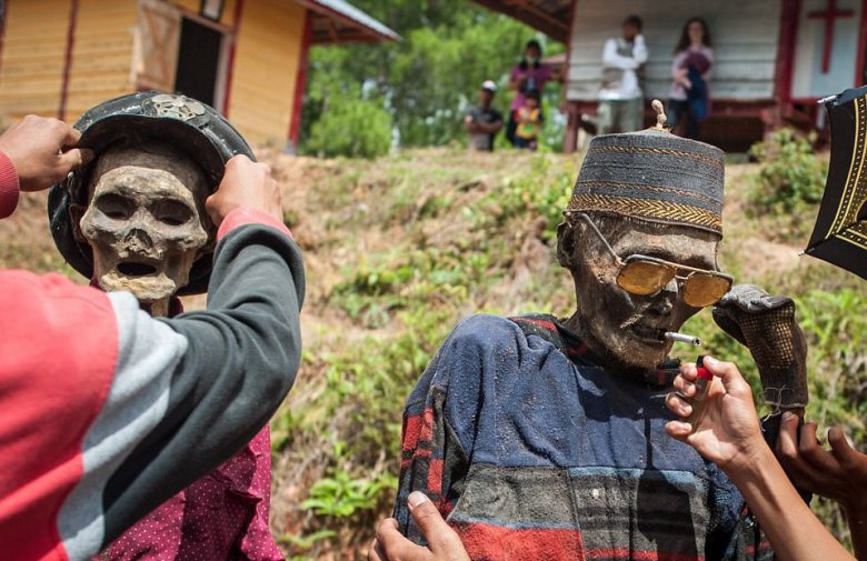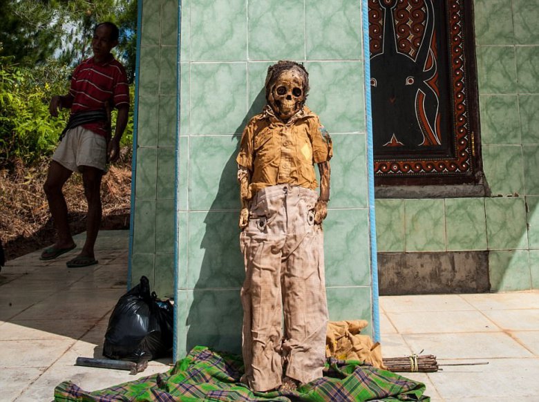 У народа Тораджи из горной местности Южной Сулавеси в Индонезии очень тесная связь с умершими родственниками — иногда мумифицированные тела родных они держат в своих домах в течение нескольких недель или даже лет, прежде чем захоронить. Ежегодно в этой местности проходит праздник урожая, в этот день деревня наполняется "живыми мертвецами". Местные жители выкапывают своих умерших родственников, моют их, переодевают, угощают сигаретами и выставляют на всеобщее обозрение.