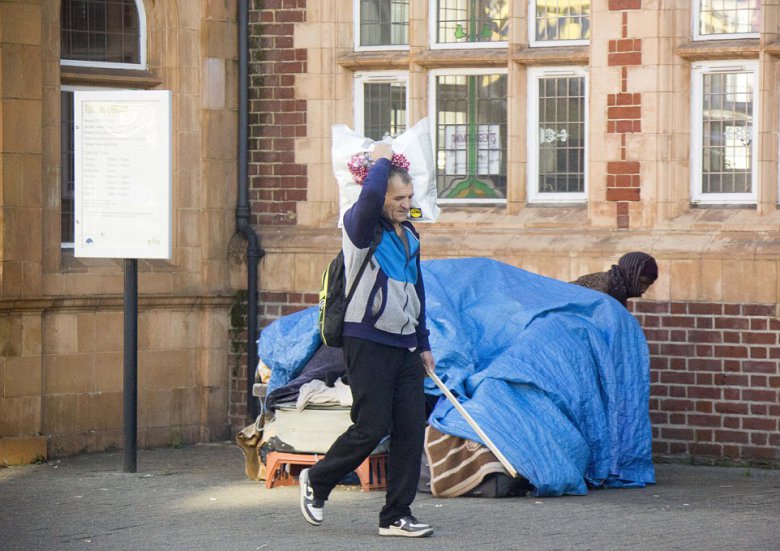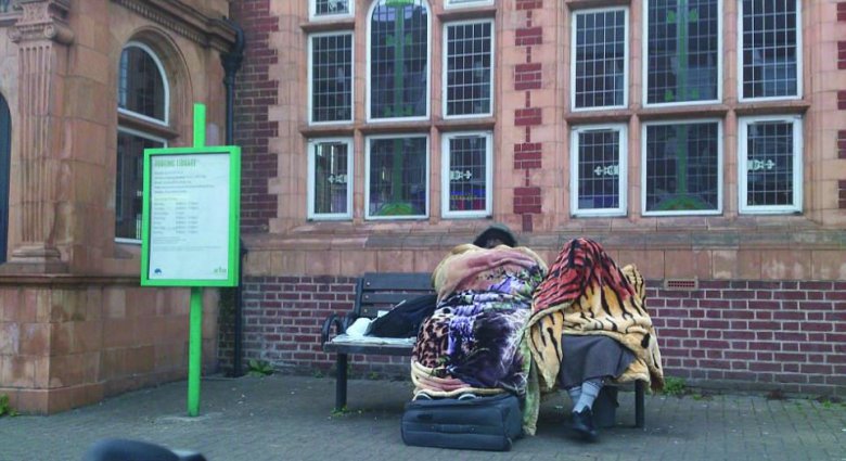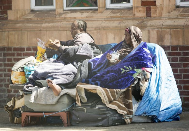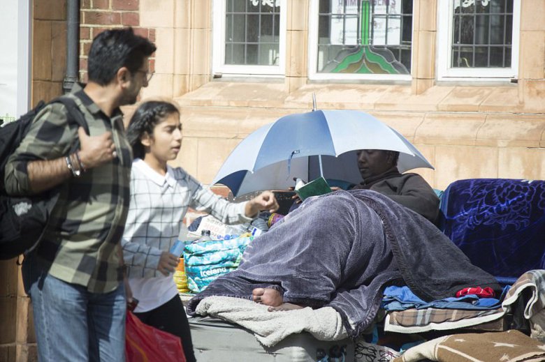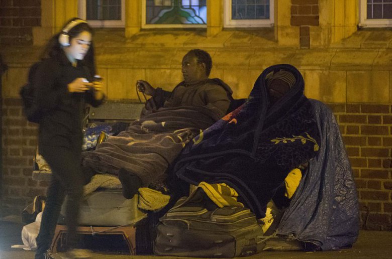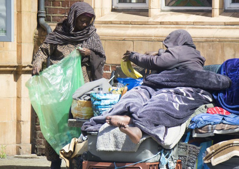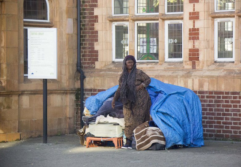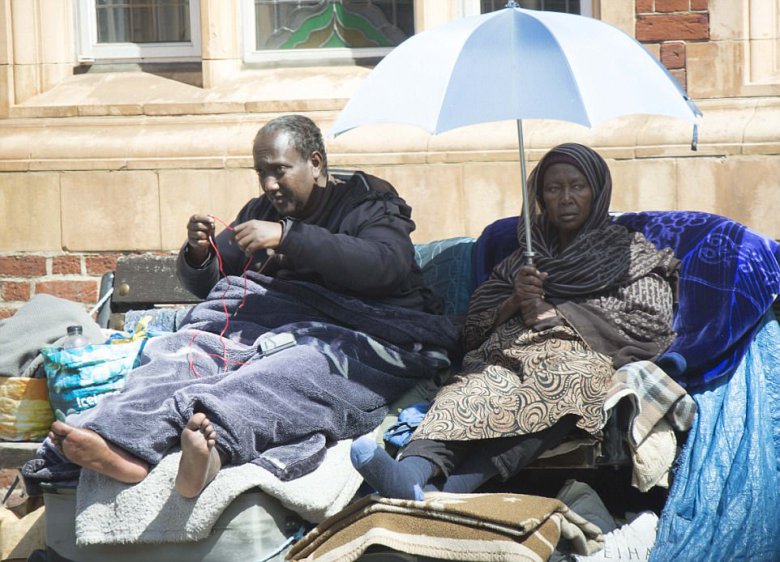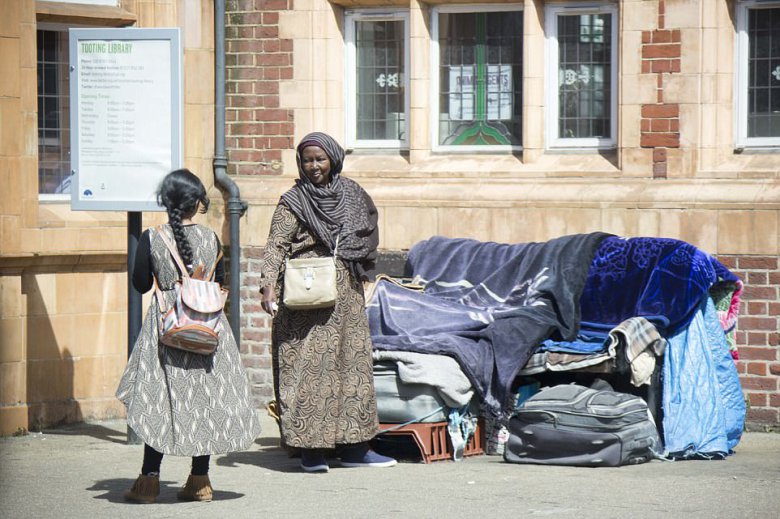 Мать и сына из Сомали выселили из квартиры в лондонском районе Тутинг в 2014 году за неуплату аренды. С тех пор они поселились на скамейке возле библиотеки в том же районе. Местные жители помогают им едой и деньгами, на ночь беженцы накрываются брезентом.