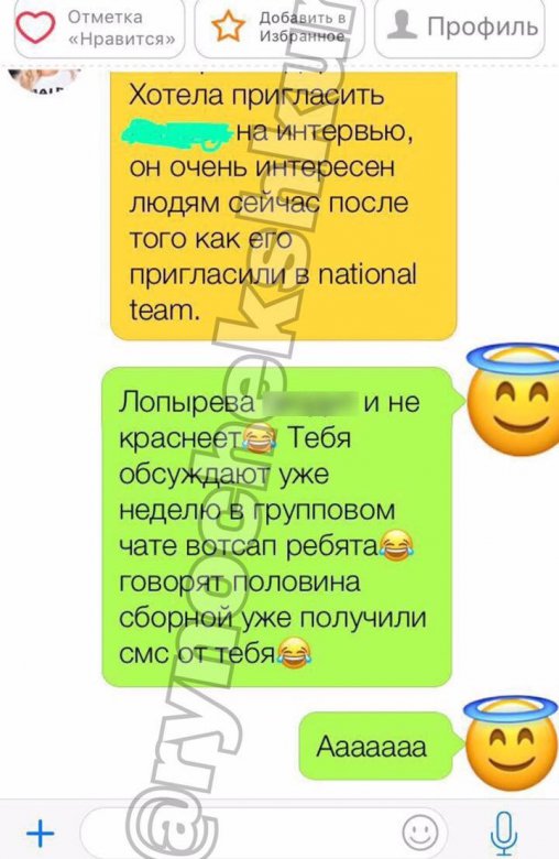Как сообщает канал, у которого более 8 тысяч подписчиков в Telegram, Лопырева будто бы хотела соблазнить футболиста "Баварии" Артура Видаля. "Прекращай позорить Россию. Бедного футболиста Видаля уже изрядно *** [достала]. *** [Писать] днями и ночами ему на испанском — это уже чересчур. От тебя шарахаются не только футболисты, но и их бедные жены, с которыми у тебя неоднократно были потуги. Даже те, с которыми ты, ВРОДЕ КАК, дружишь, тебя искренне ненавидят. Могу сказать , что один из всех, с кем она трахалась – легионер))) А ты, между прочим , Лопырева, преданно смотришь в глаза его жене", - сообщает источник.