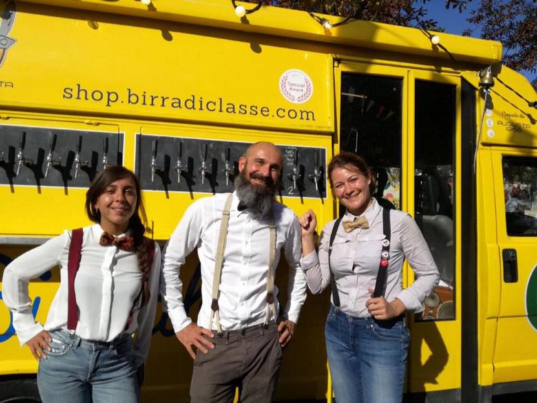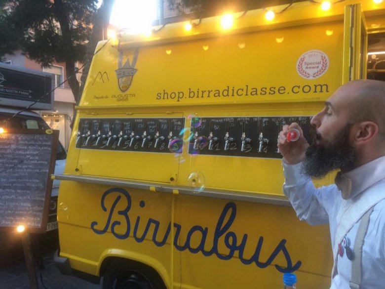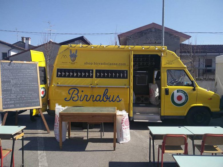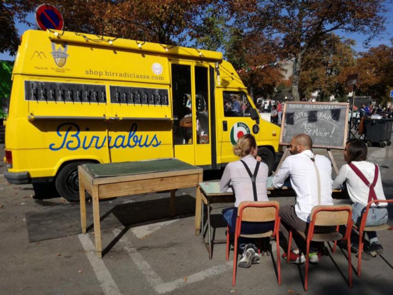Светлые головы превратили бывший школьный автобус в пивную на колесах. Этот передвижной бар колесит по Европе, предлагая отведать 17 сортов итальянского пива за старыми партами. К пиву также предлагаются легкие вкусные закуски.