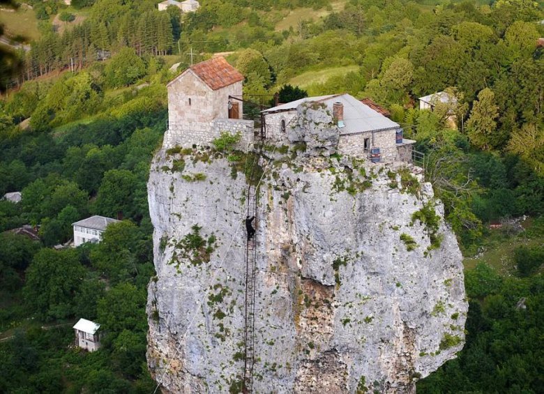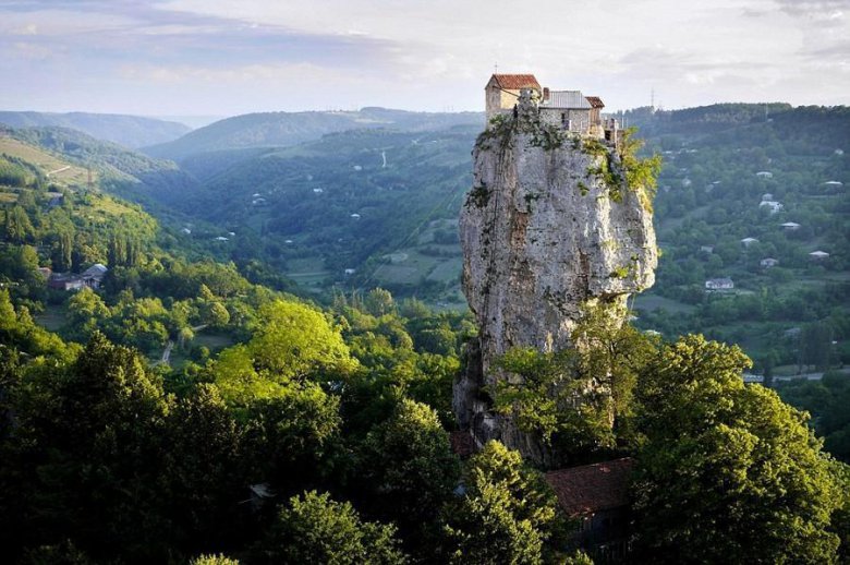 Грузинский монах Максим (Кавтарадзе) уже 20 лет живет на сорокаметровом известняковом монолите в Имеретии. Кацхийский Столп еще с дохристианских времен почитался местными жителями как место, где человек может приблизиться к богу. Церковь на вершине горного образования была построена между VI и VIII столетиями. Выяснили это в 1944 году, когда от храма остался только фундамент