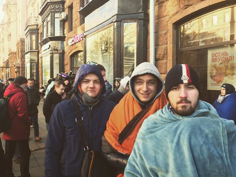С шести утра 3 ноября ожидающие получат от Re:Store специальные браслеты, по которым будут выдавать определенное количество смартфонов «в одни руки». В очереди регулярно проводится перекличка, когда ожидающим нужно отмечаться, что они все еще на месте.