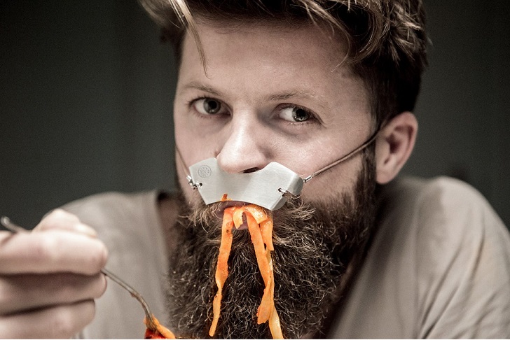 Три шведских дизайнера придумали для хипстеров способ защитить усы в процессе приема пищи и напитков. Многофункциональный протектор под названием «Щит для усов» (Stache Shield) можно надевать на лицо или на емкость с напитком.