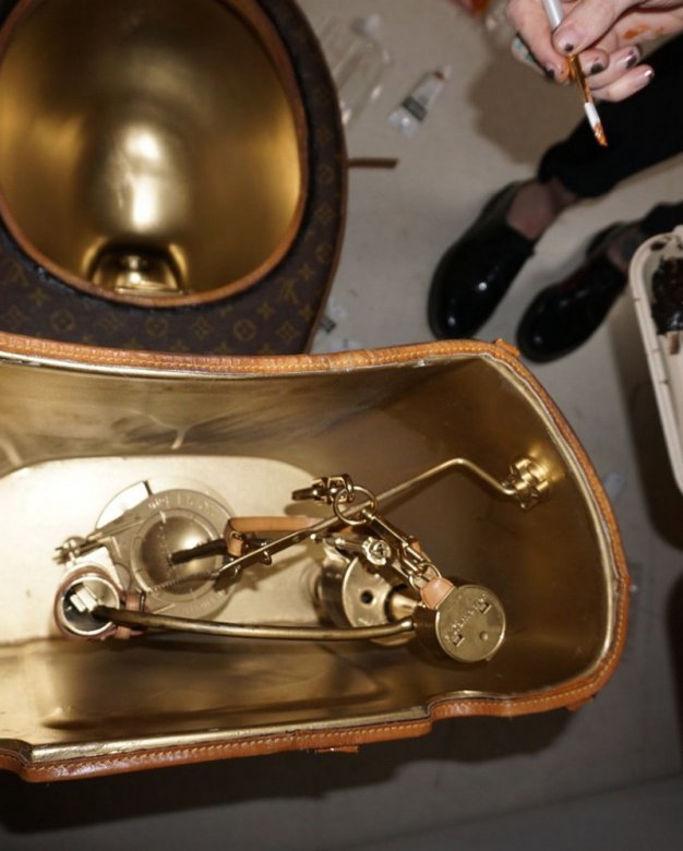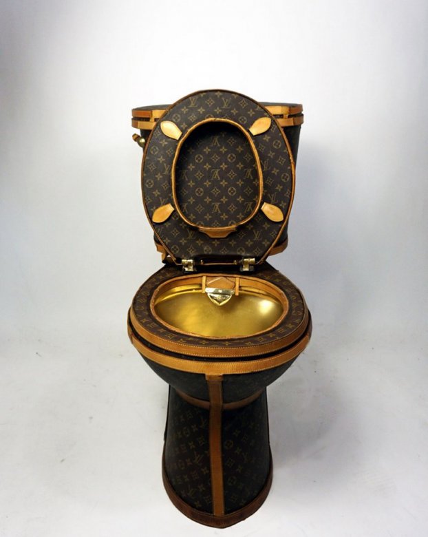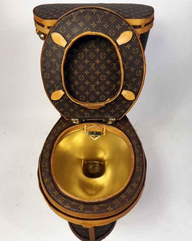 Американская художница додумалась сделать унитаз из сумок Louis Vuitton. На материал для толчка она раскромсала 15 сумок и 1 чемодан, общая стоимость которых составила 18 тысяч баксов. Художница планирует выручить за свое творение как минимум в 5 раз больше.