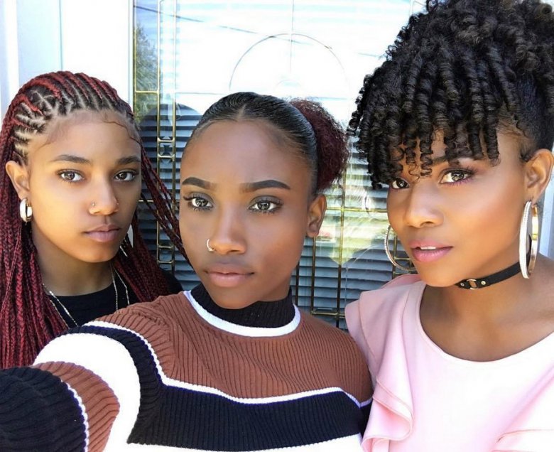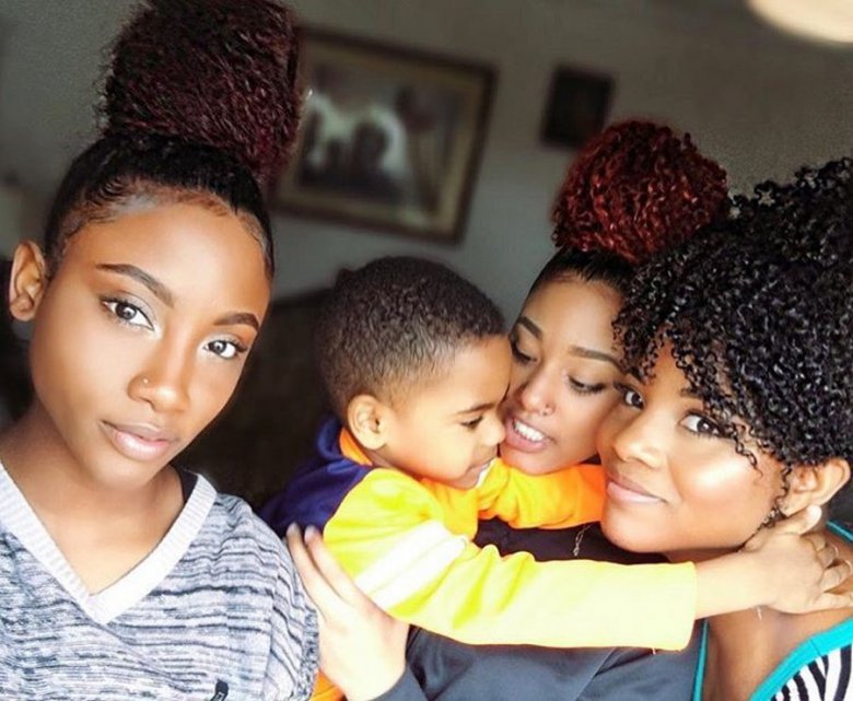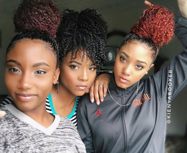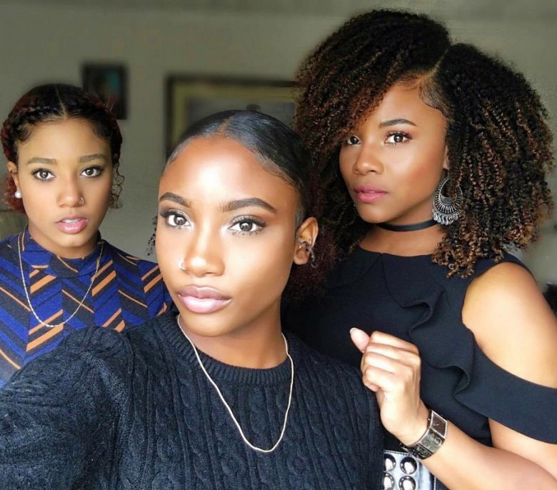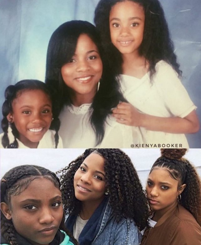Глядя по фотографии, на которой изображены три молодые девушки, невозможно поверить, что на них две дочери и их мама. Киена Букер, у которой более 81 000 последователей в Instagram, где она ведет обучающие программы по дизайнерским прическам, выглядит на фотографиях доже моложе своих дочерей.