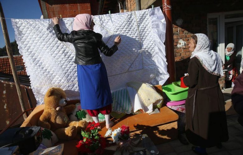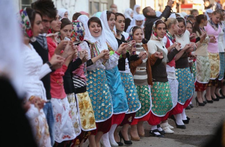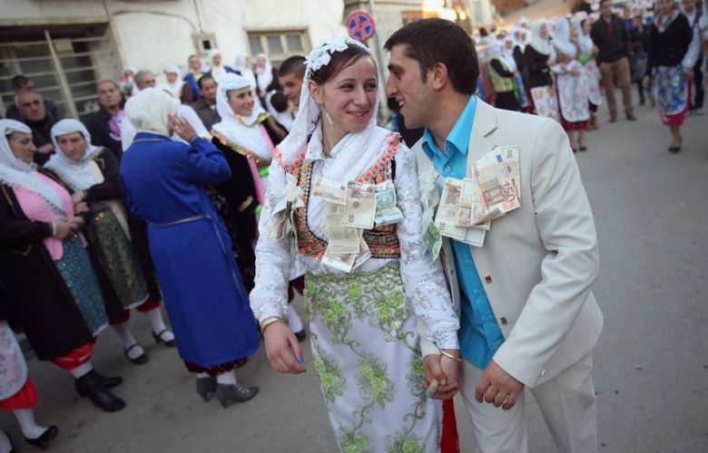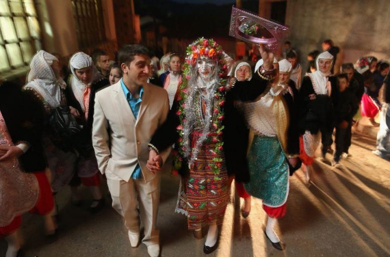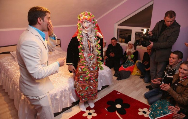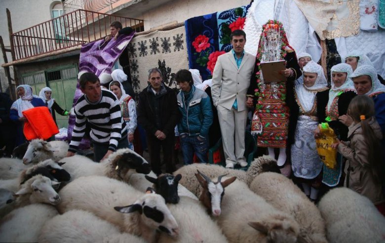 Жених, мать невесты и ее бабушка ведут молодую, одетую в яркий корсет и мешковатые штаны, к ожидающим гостям. Невесте запрещено открывать глаза до тех пор, пока священник не благословит юную пару. Сложно сказать, когда именно появилась эта традиция. Жители деревни сталкиваются с бОльшими трудностями, чем большинство мусульман в Болгарии.