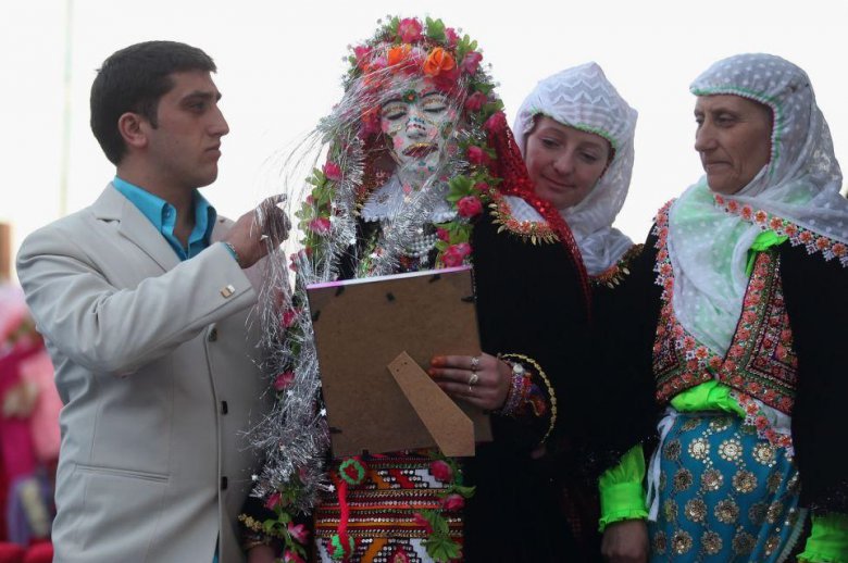 На этом странном фото – свадьба Фатьмы Улановой и Джамала Сиракова из деревни Рыбново. Жители этой болгарской горной деревни, которые относятся к исповедующей ислам этнической группе помаков, славятся уникальными свадебными церемониями, проходящими исключительно зимой.