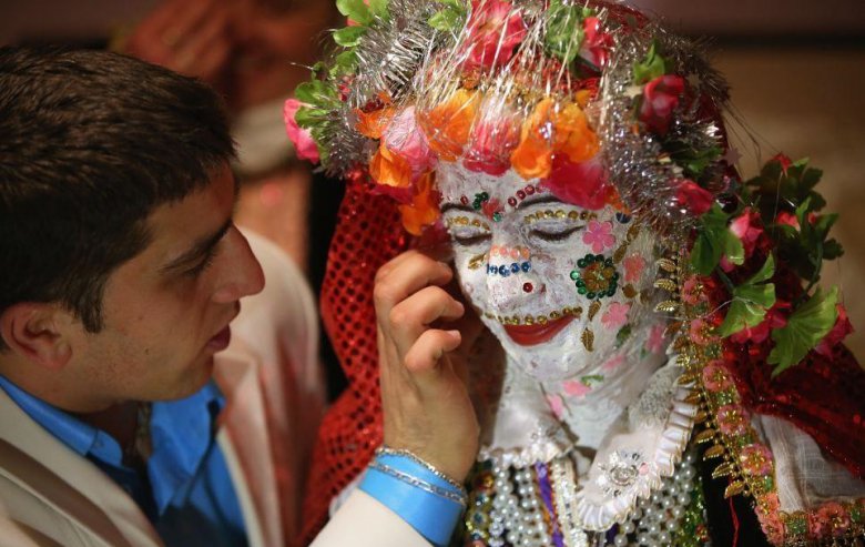 Но самая важная часть обряда – разукрашивание лица невесты – проводится на второй день после свадьбы. Родственницы молодой покрывают ее лицо толстым слоем белой краски и украшают его разноцветными блестками. На голову невеста надевает длинную красную фату. На свадьбе никто не пьет алкогольные напитки, а секс до свадьбы – это табу.