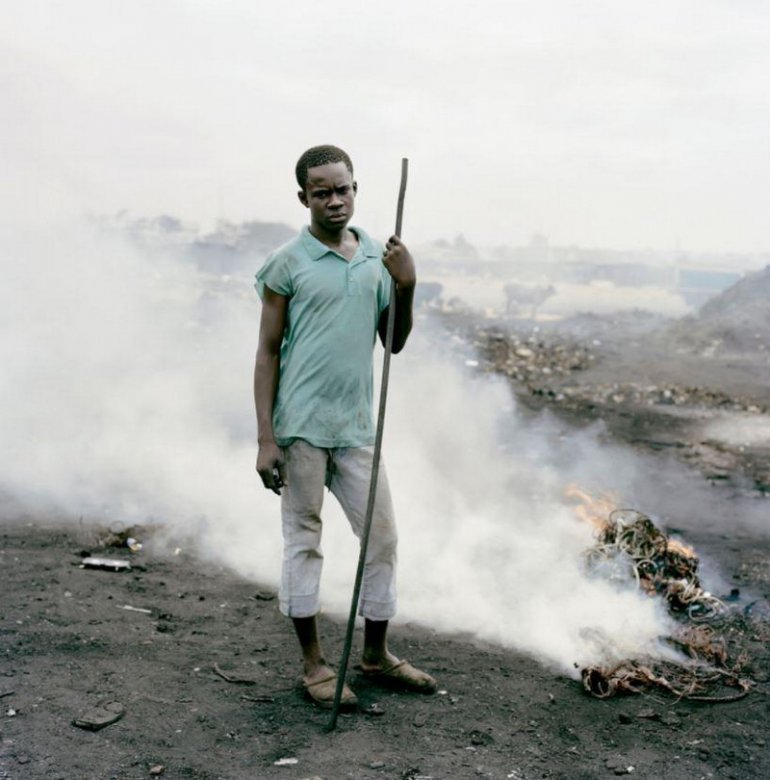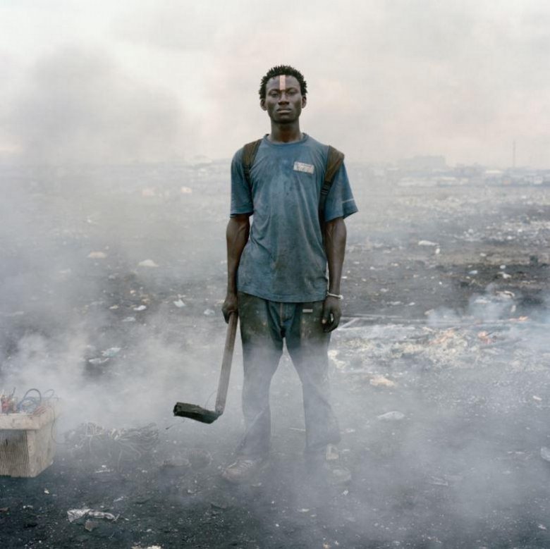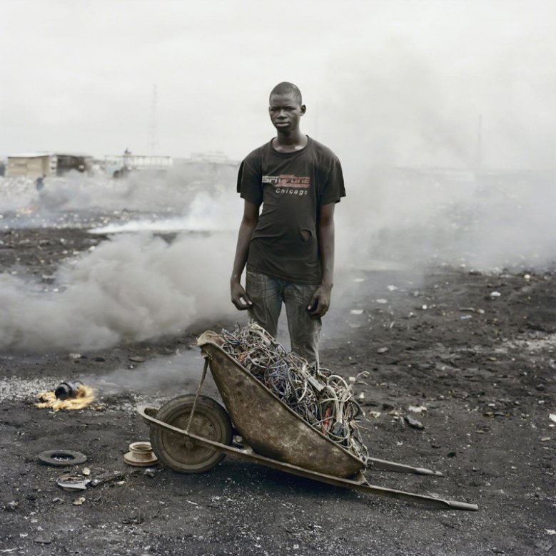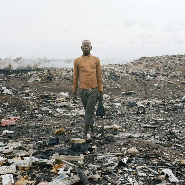 Фотограф Питер Уго из Южной Африки посетил страну Гана, в которой он сделал серию фотографий с акцентом на жизнь людей около свалок. В этой стране есть несколько свалок, в которые свозится устаревшая и сломанная техника в общей сложности ~50 миллионов тонн ежегодно. Часть этих отходов складируется в контейнеры и отправляется в развивающиеся страны для переработки или восстановления — таким образом создаются рабочие места. Однако другая часть техники остается навсегда в трущобах, известных как Агбогблоши, и упоминается местными жителями как Содом и Гоморра. Многие жители живут за счет поиска проводки и цветных металлов в этом районе, и жизнь эта очень тяжелая.