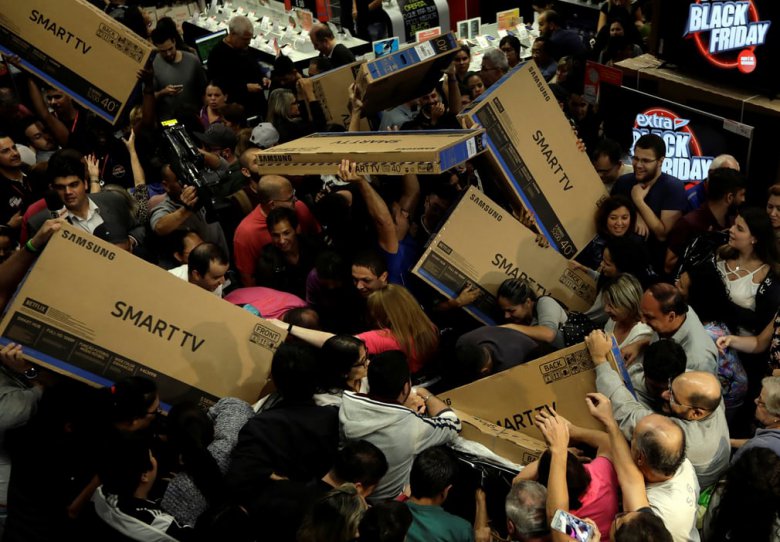 Чёрная пятница — пятница после Дня благодарения в США. С неё начинается традиционный рождественский сезон распродаж. Люди стоят в очередях, ожидая открытия магазинов, чтобы приобрести товары с максимальной скидкой. Представляю вашему вниманию небольшую подборку фотографий, которые сделаны в некоторых магазинах США, Бразилии и Великобритании.