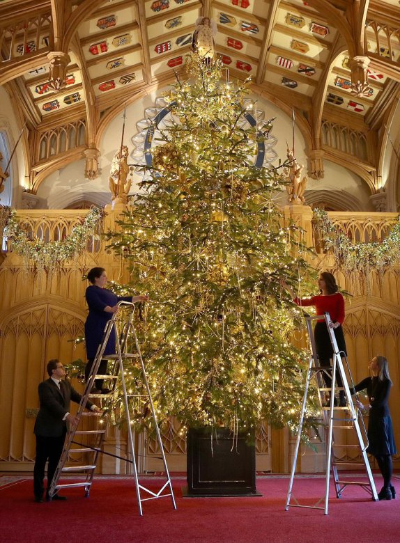 Многие из нас тянут до последнего с украшением дома к праздникам, но персонал дома Елизаветы II в графстве Беркшир уже подготовился к Рождеству. В Георгиевском зале Виндзорского замка поставили роскошную шестиметровую пихту Нордмана, срубленную в Большом Виндзорском парке, а обеденный зал украсили антикварные столовые приборы из позолоченного серебра.