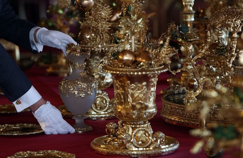 Этот набор посуды для особых случаев был заказан еще Георгом IV — гурманом и меценатом, который правил Великобританией с 1820 года. Теперь на ней подают угощения во время государственного банкета.